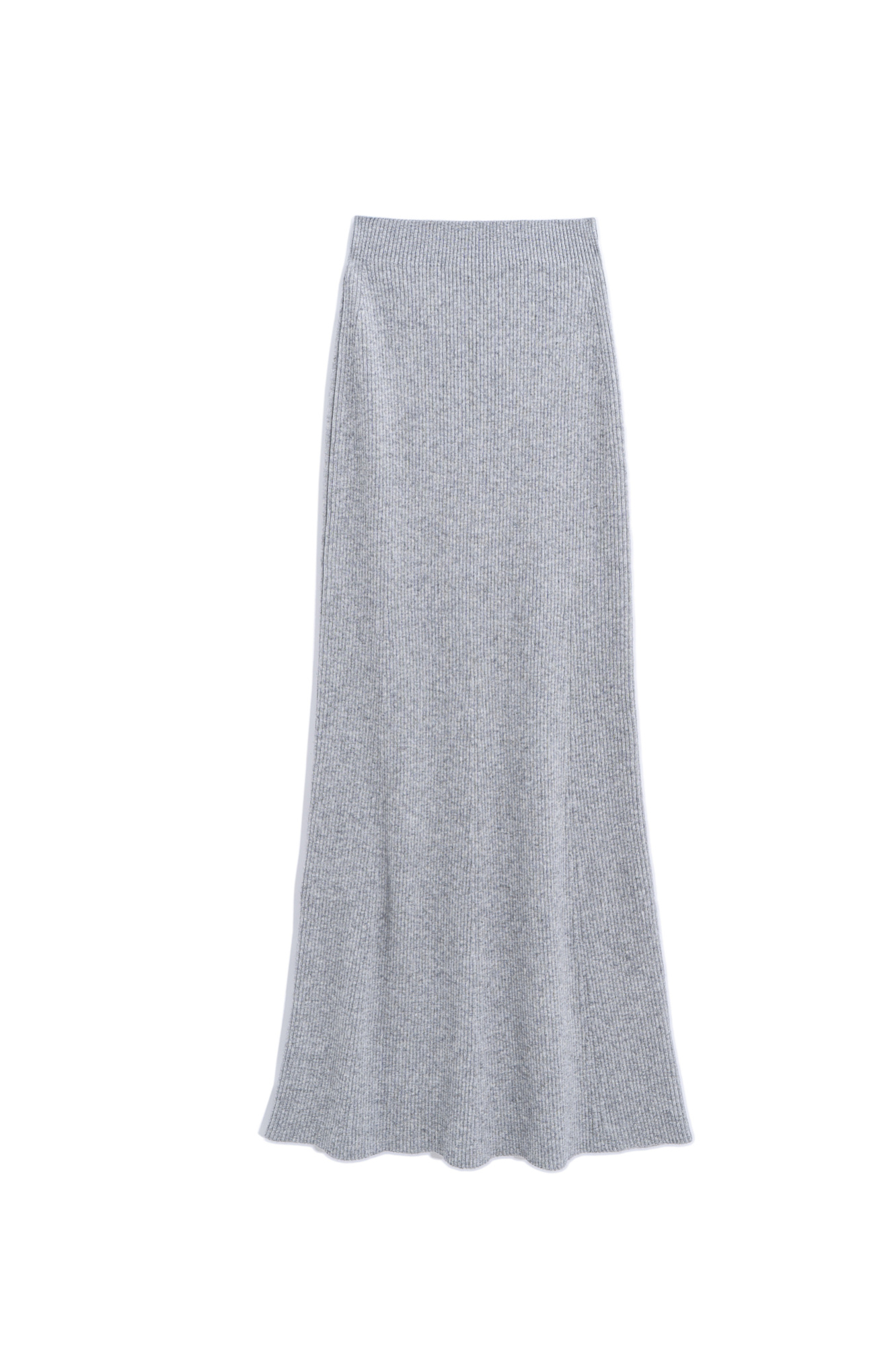 Трикотажная юбка длины макси из кашемира и шерсти. Модель по фигуре выполнена в широкий рубчик.