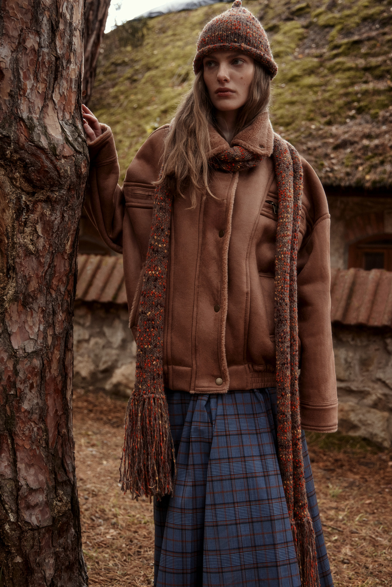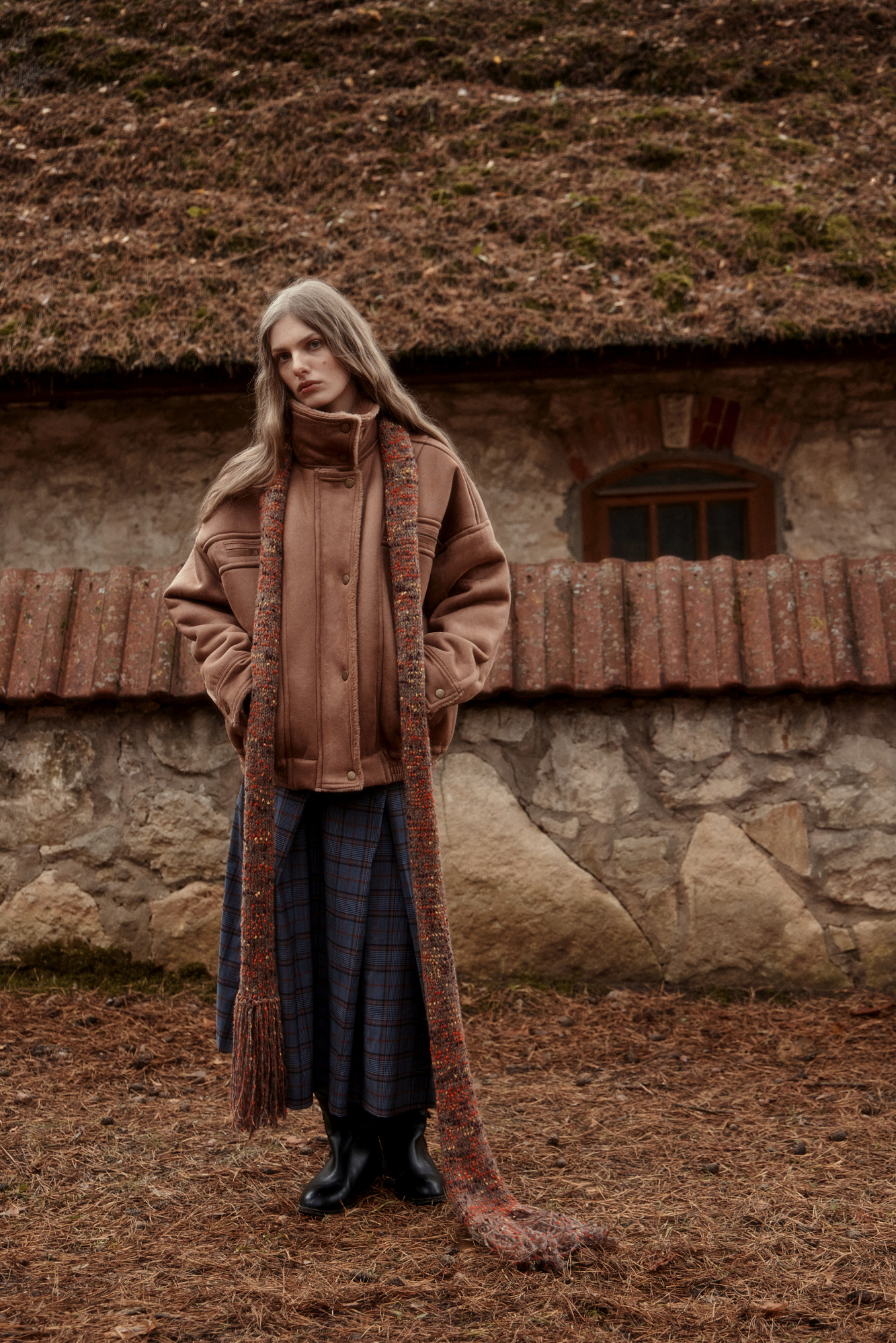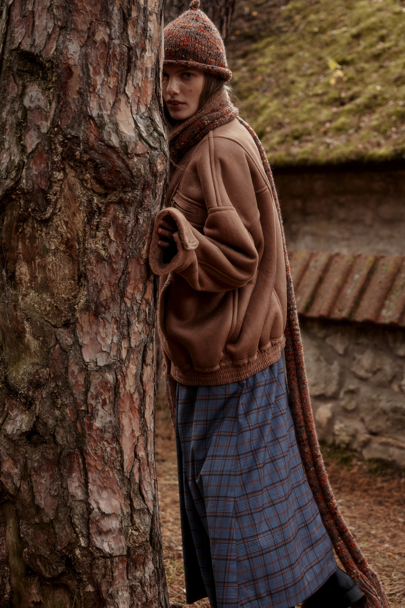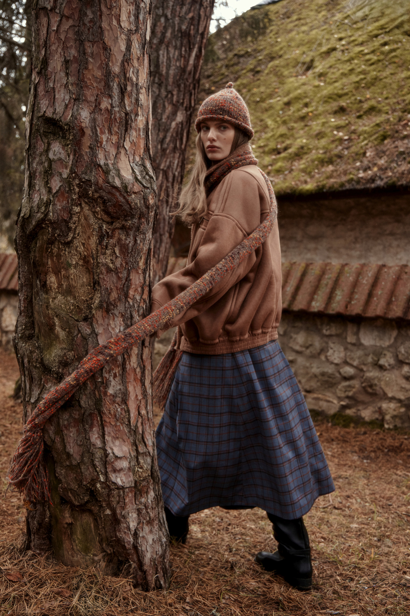 Юбка длины миди из шерсти в клетку. Модель А-силуэта с крупными косыми складками спереди. Застежка на молнию сзади. Изделие без подкладки.