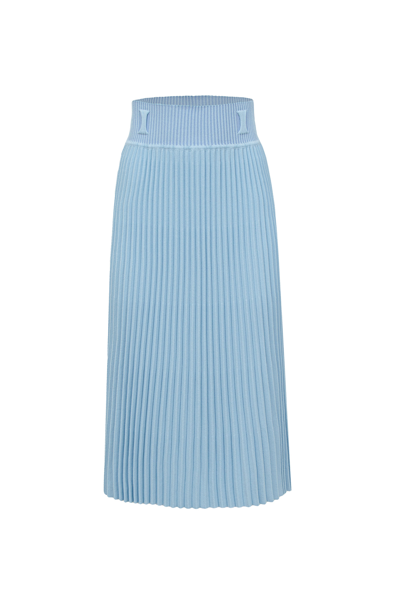 Трикотажная юбка плиссе длины миди с эластичным широким поясом и шлевками для ремня.