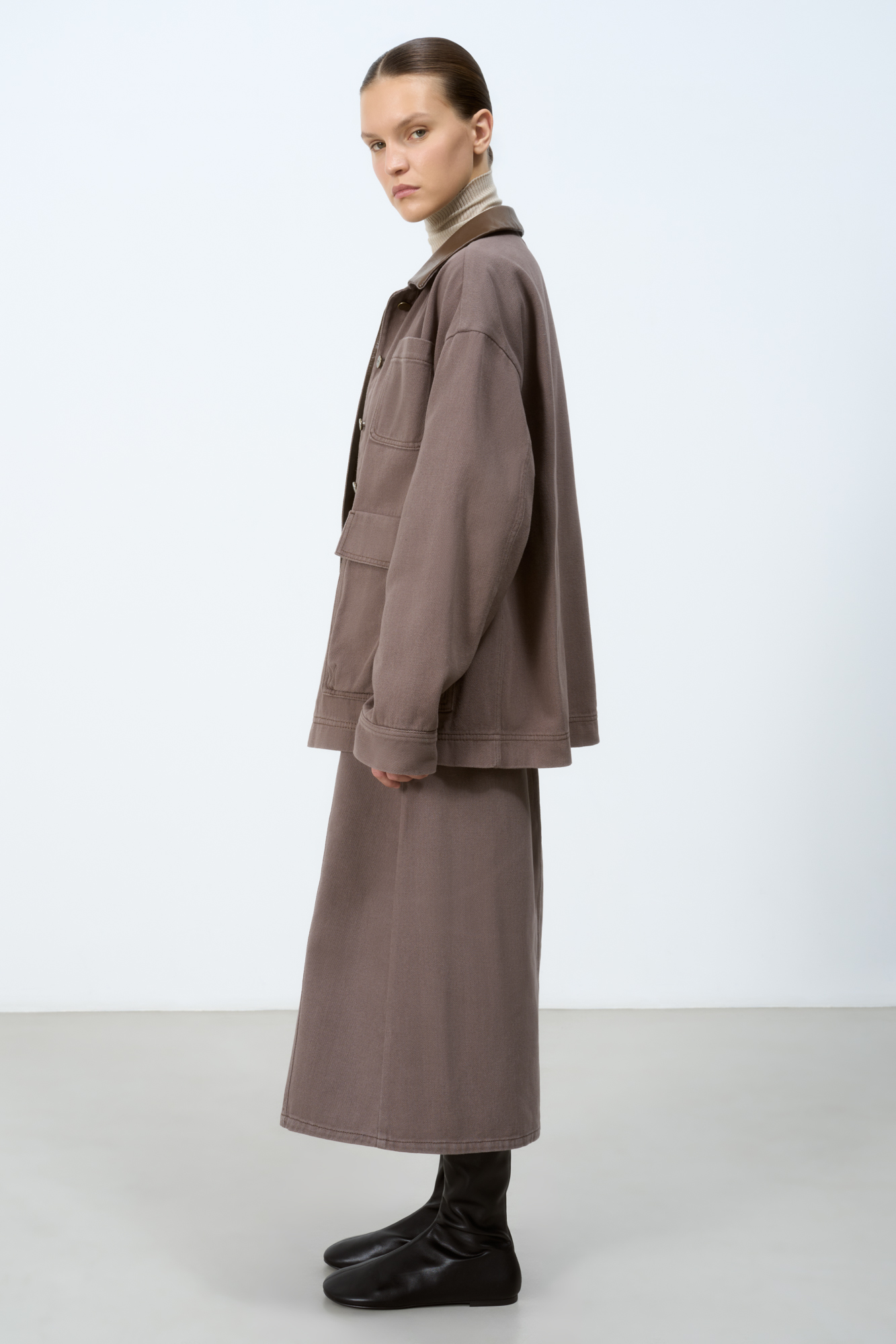 Джинсовая юбка длины миди из 100% хлопка с разрезом спереди. Пять карманов, застежка на молнию и пуговицу. Шлевки на поясе для ремня.