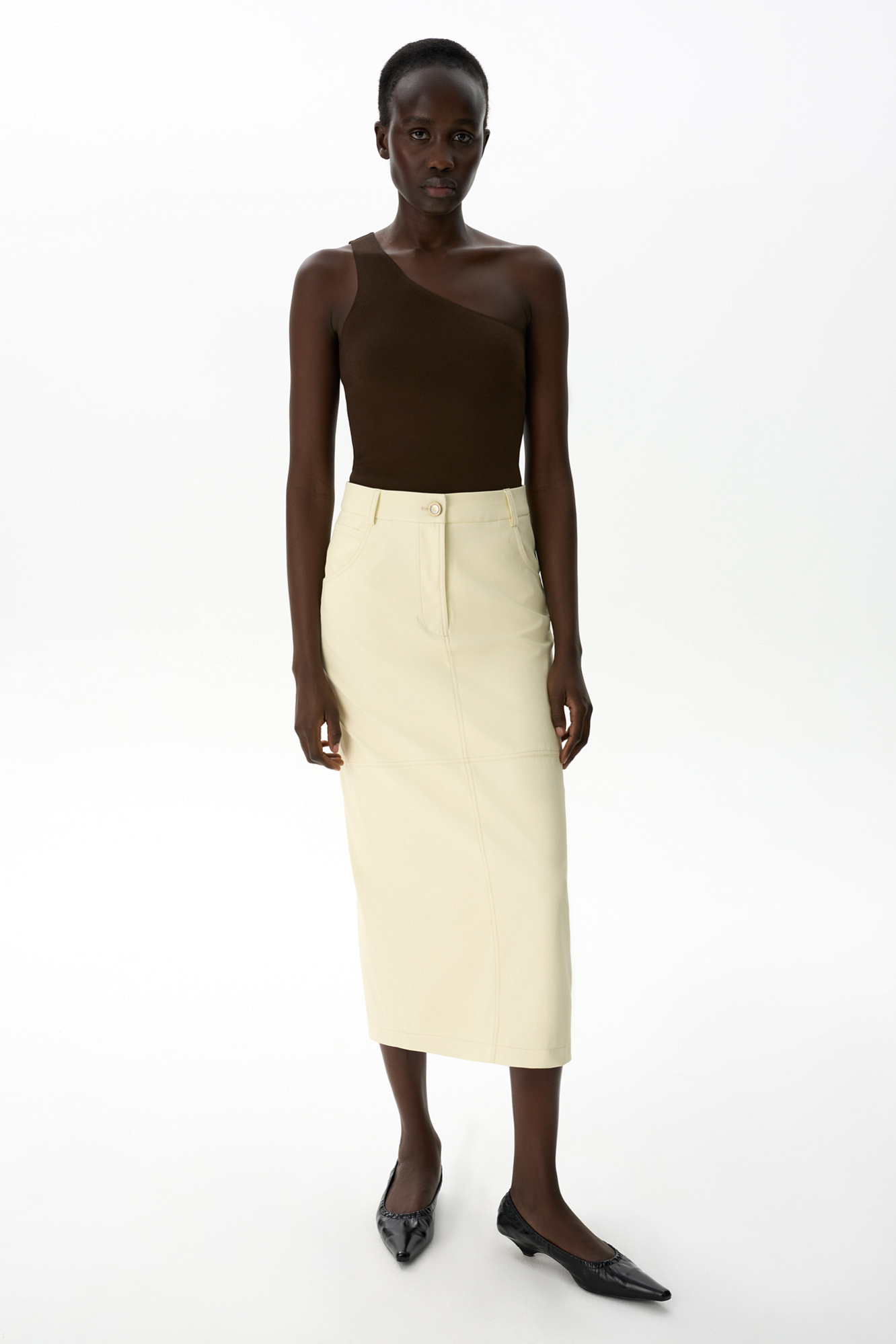 Юбка миди из экокожи