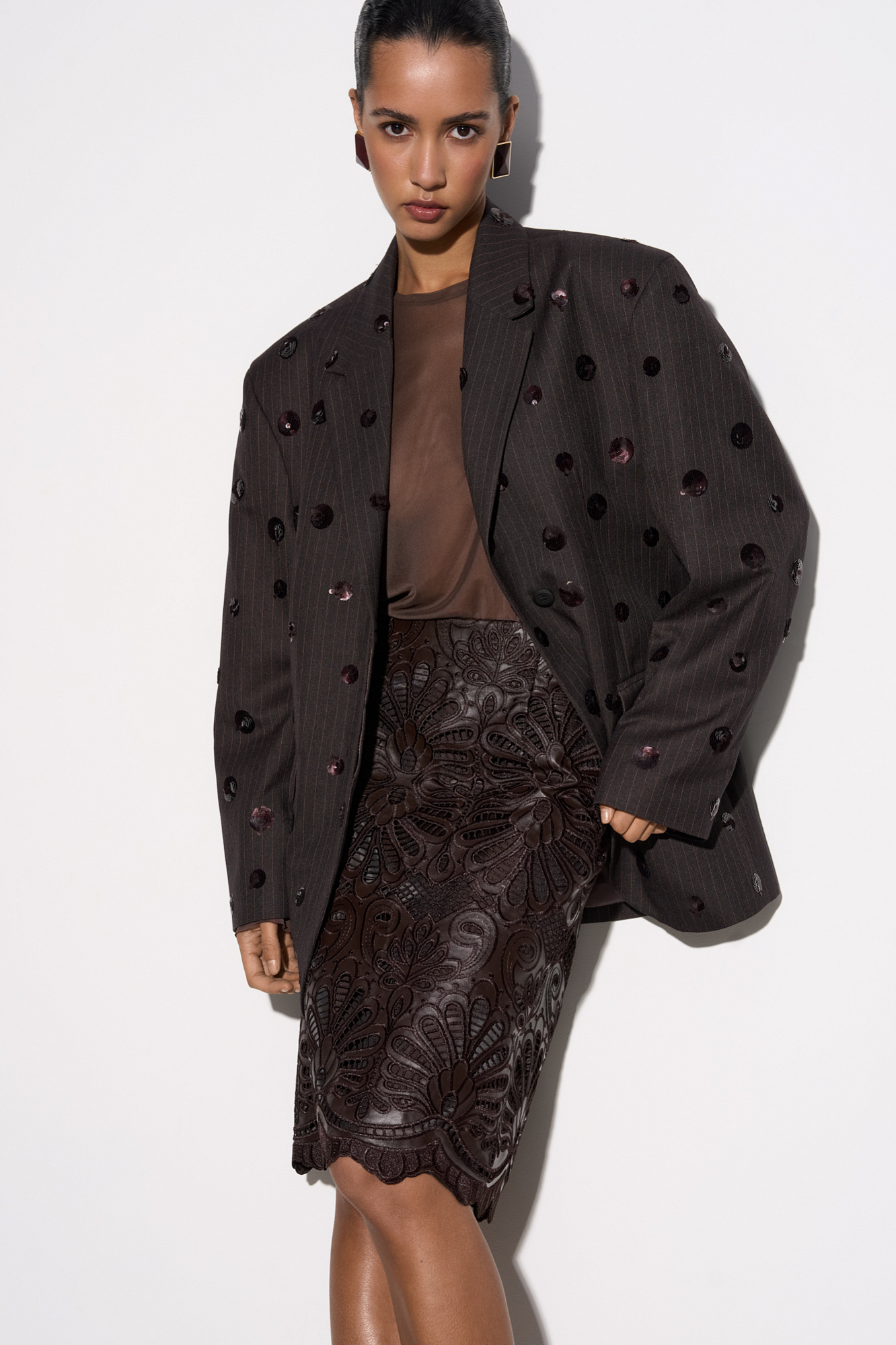 Юбка с кружевом из экокожи