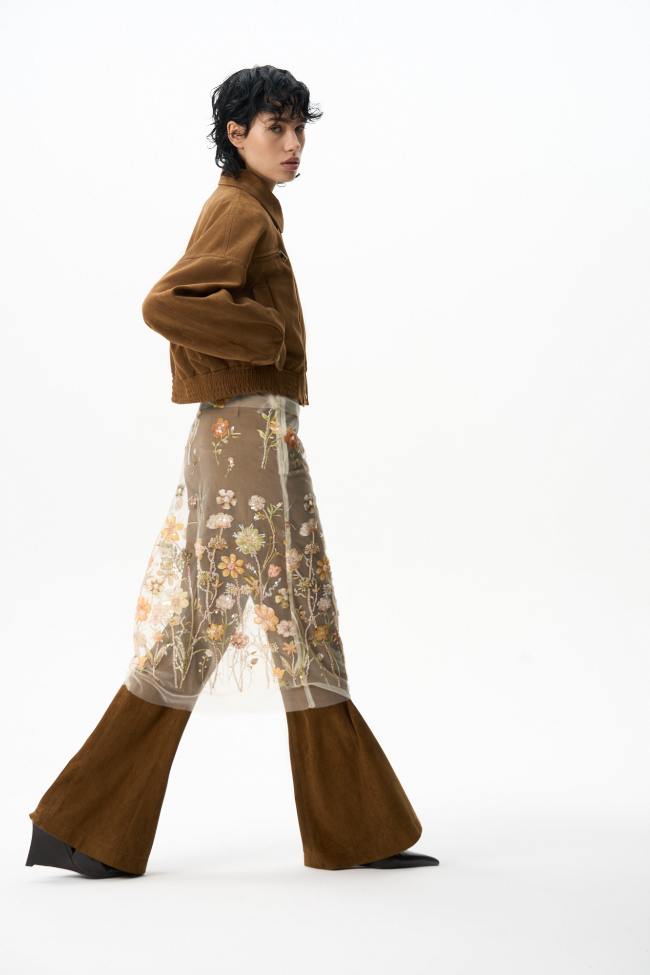 Прозрачная юбка с вышивкой