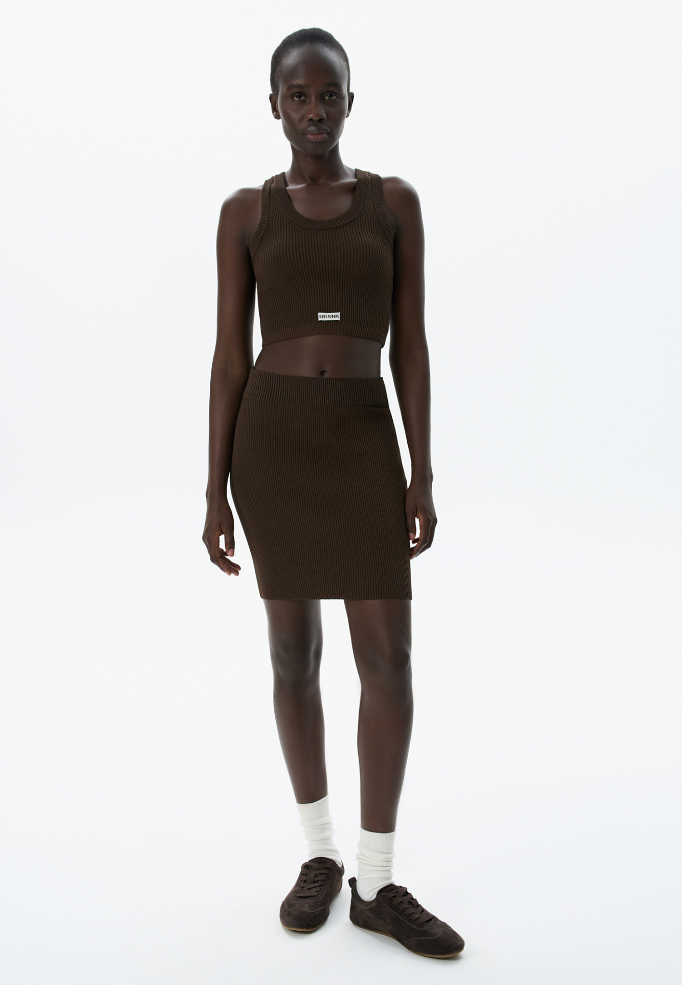 Трикотажная юбка длины мини из вискозы. Модель приталенного силуэта с эластичным поясом на резинке.