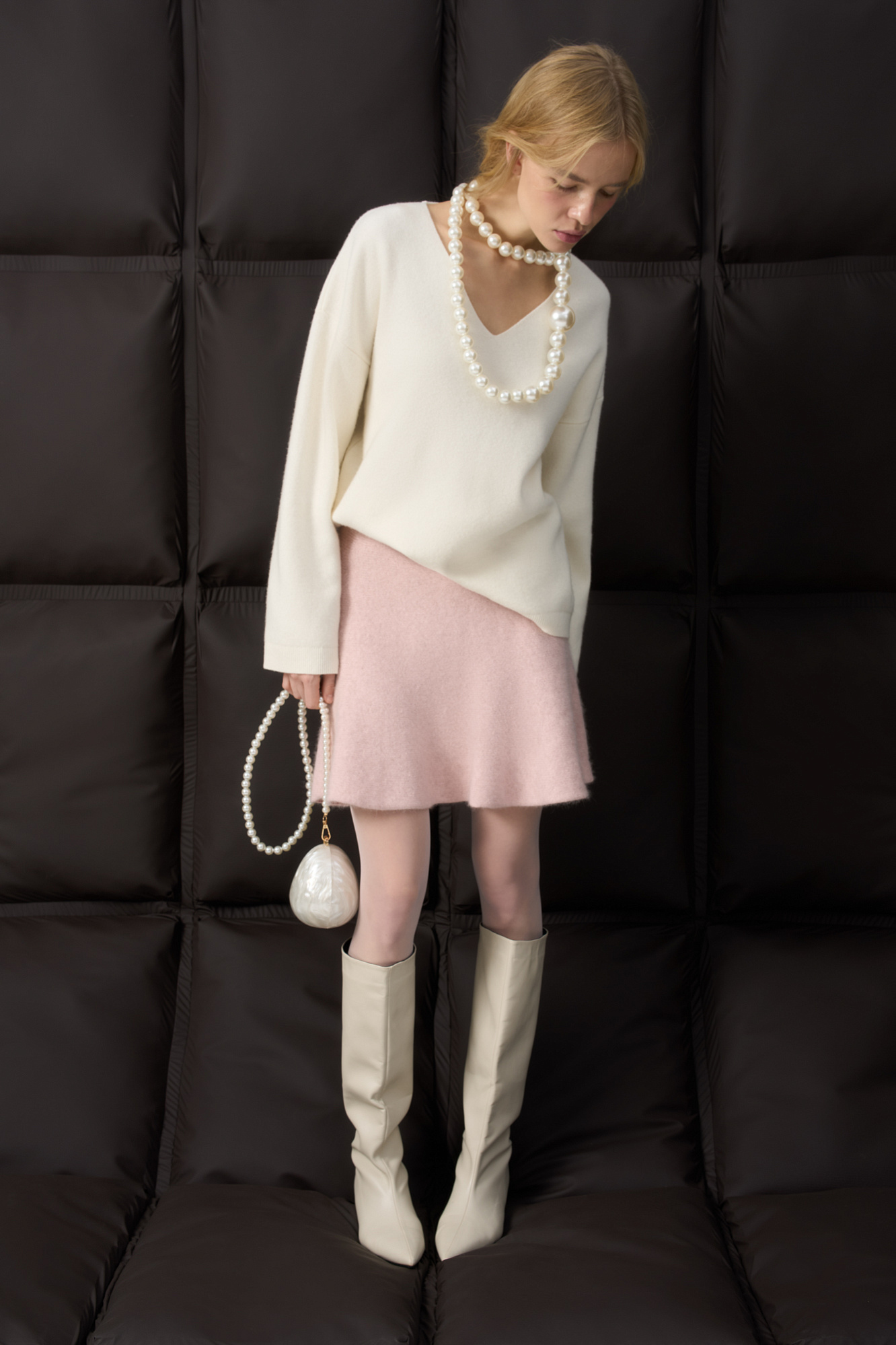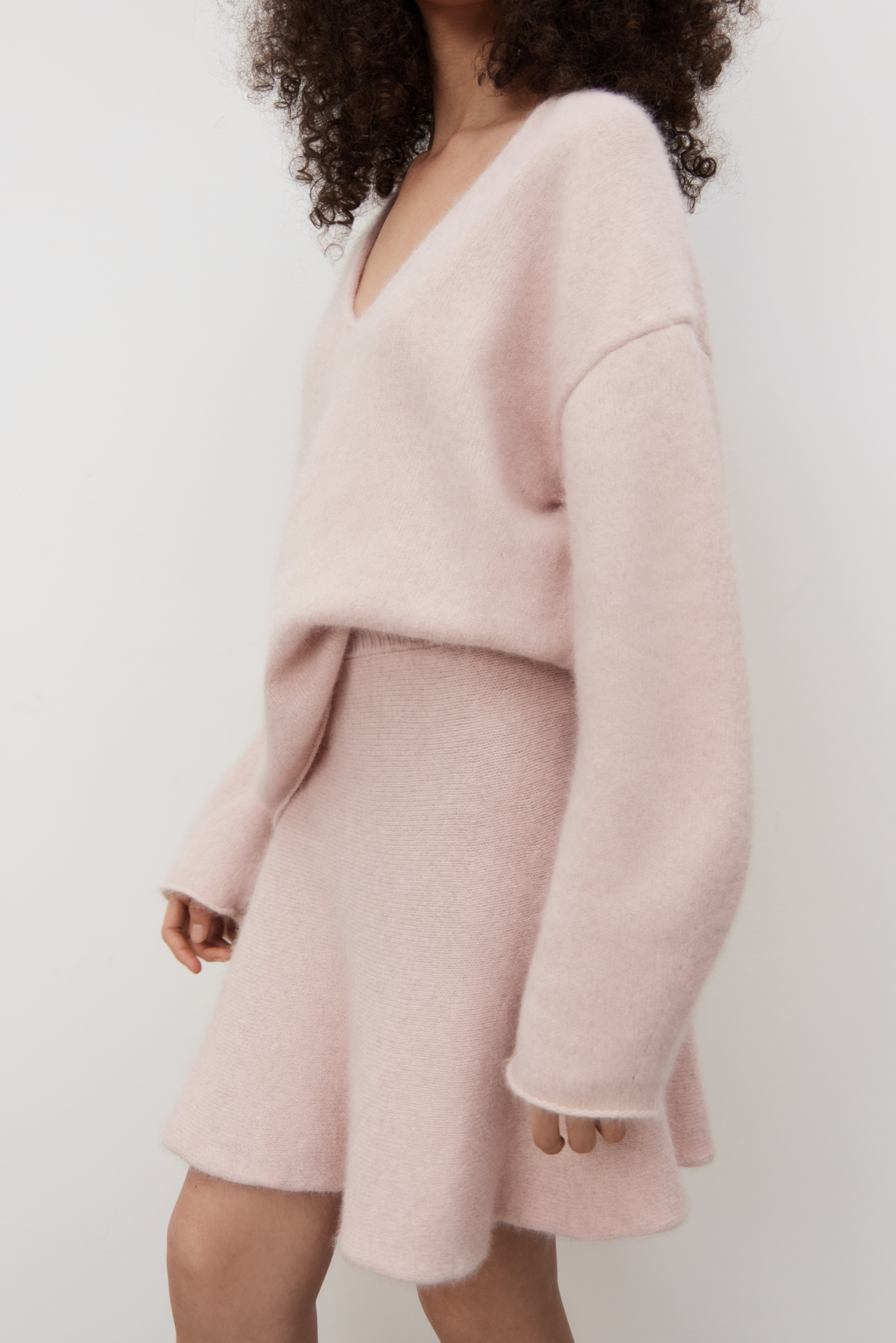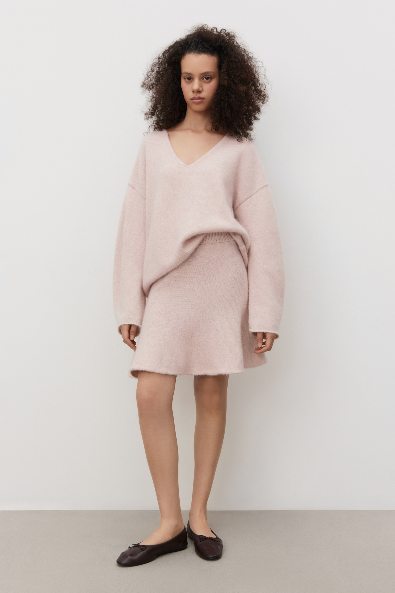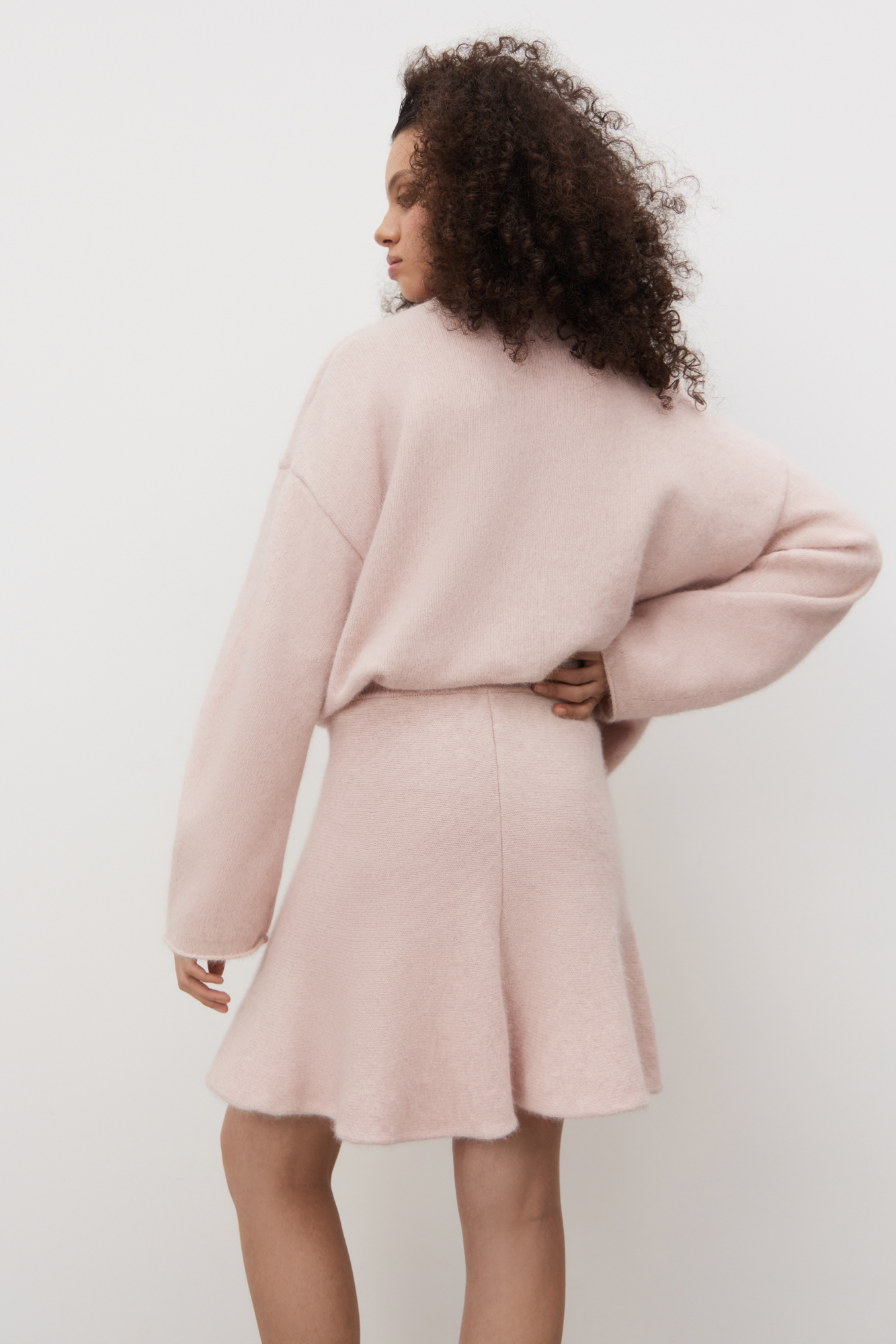 Трикотажная юбка длины мини из шерсти и пуха лисы. Модель полусолнце с эластичным поясом на резинке.