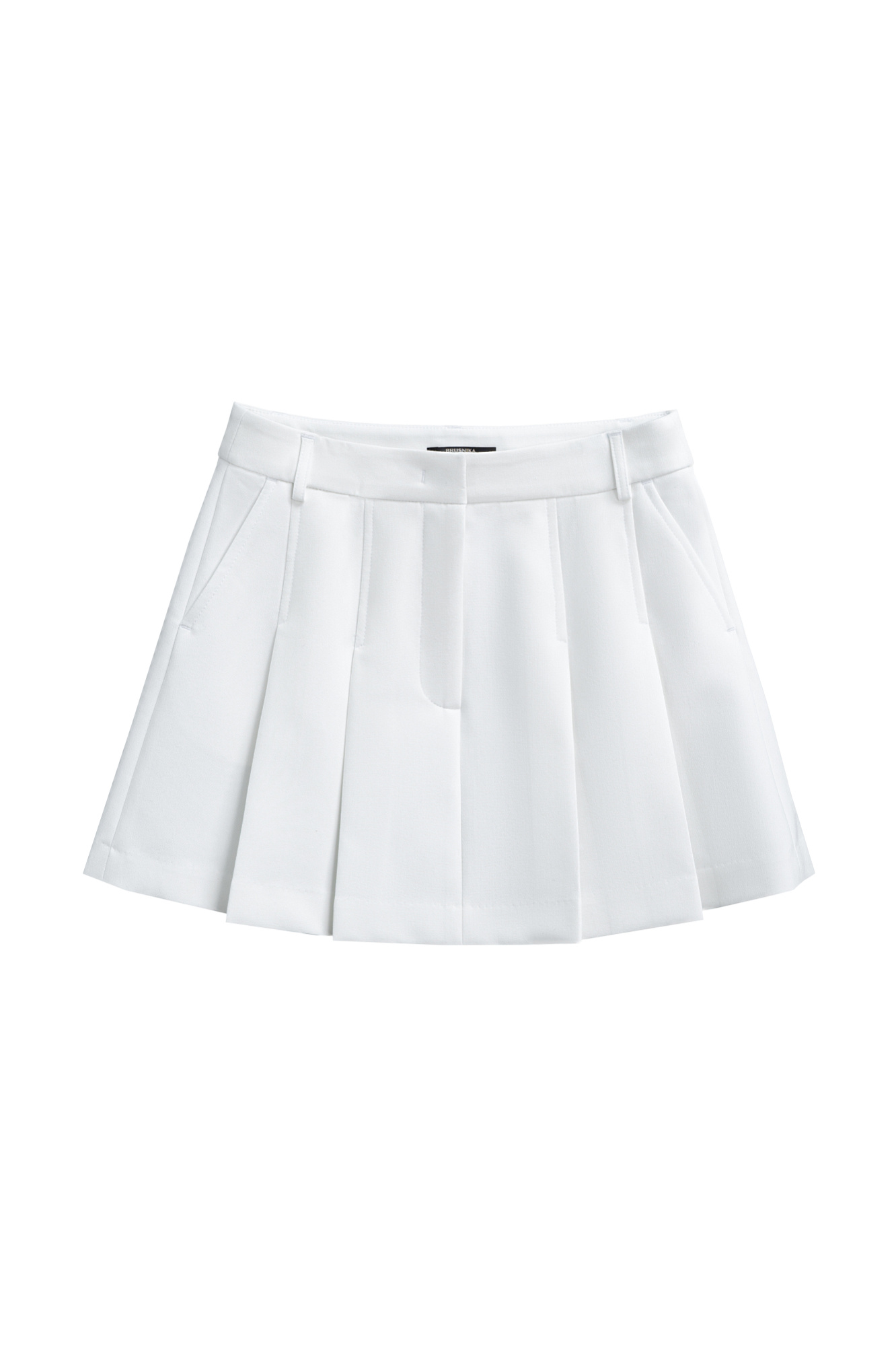 Юбка длины мини из поливискозы. Модель с крупными складками, боковыми карманами и шлевками на поясе для ремня. Застежка на молнию, крючок и внутреннюю пуговицу.