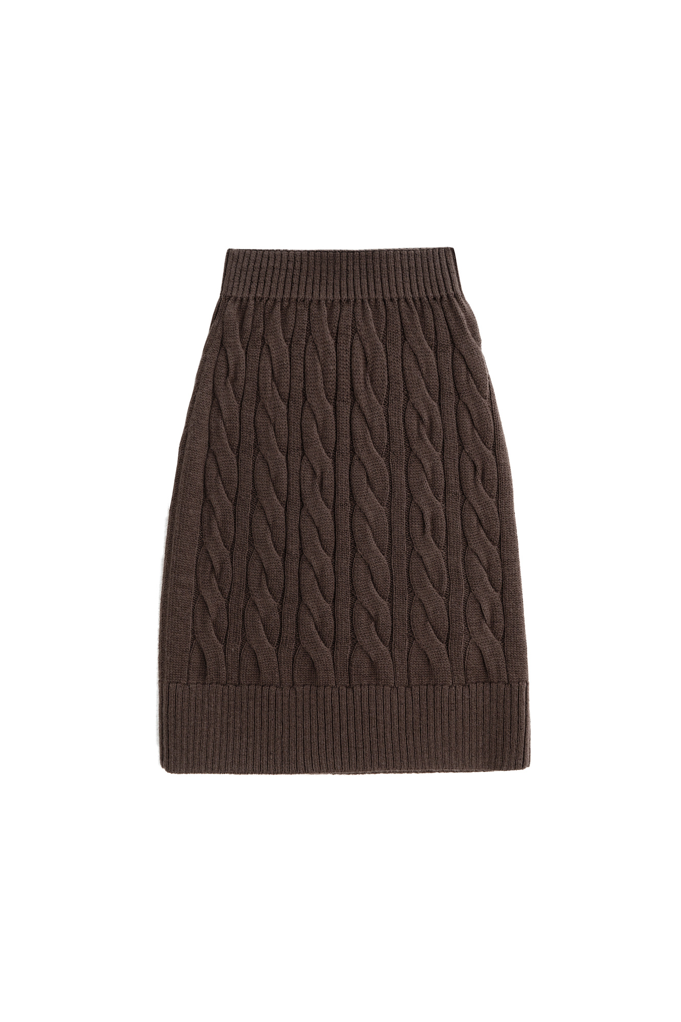 Трикотажная юбка длины мини с объемными косами из мягкой шерсти. Широкий эластичный пояс на кулиске. Дополнить образ можно джемпером в том же стиле.