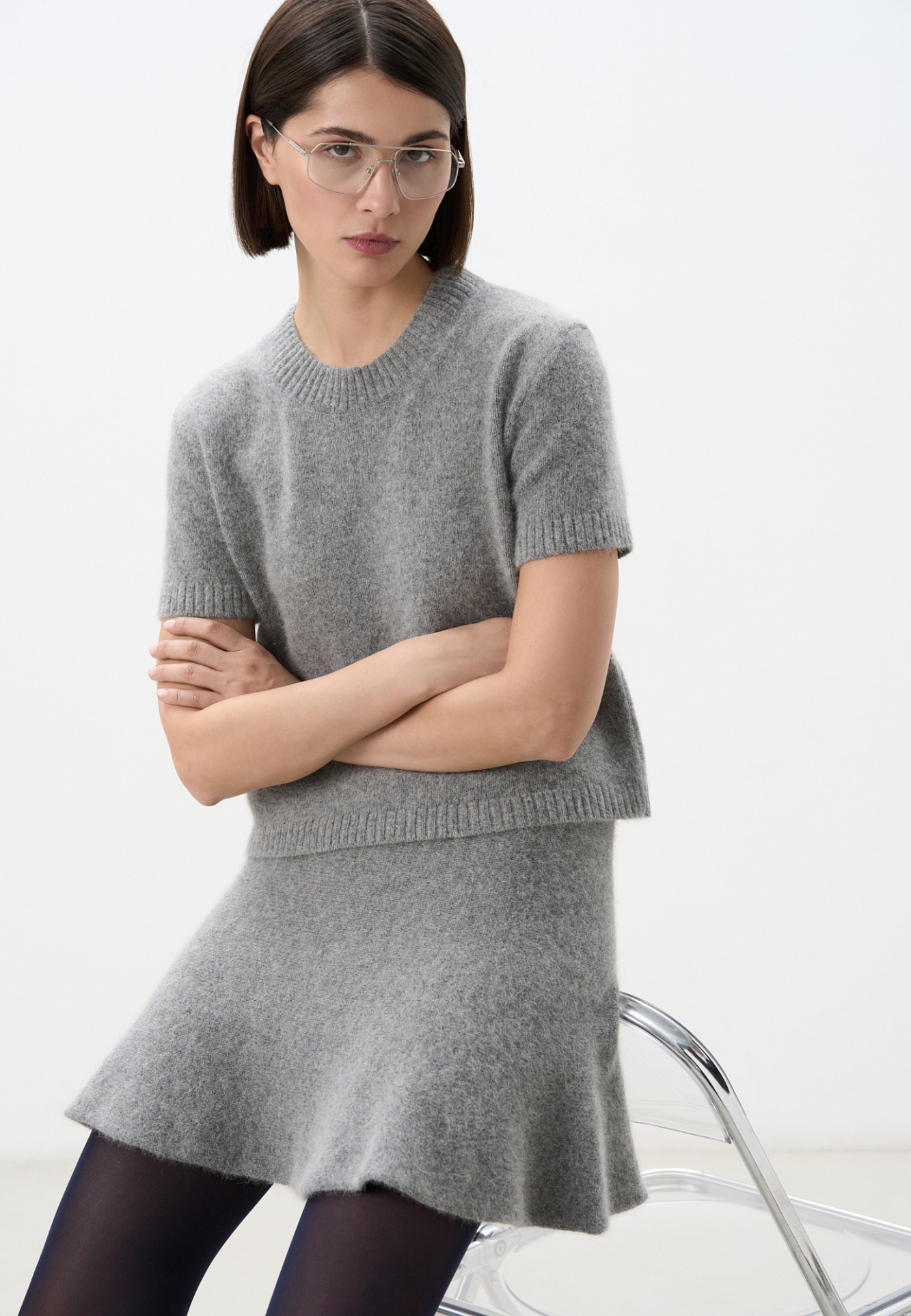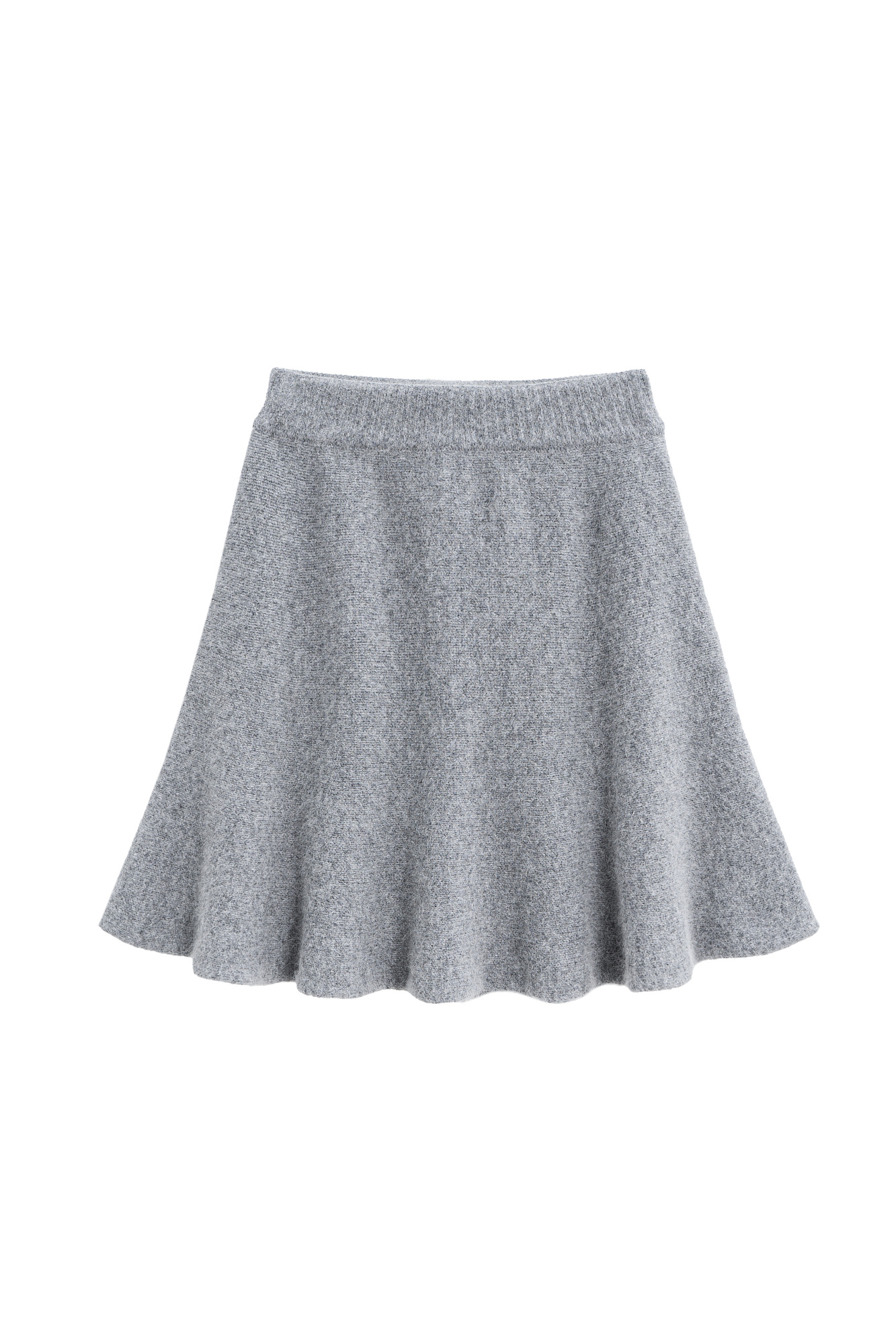 Трикотажная юбка длины мини из шерсти и пуха лисы. Модель полусолнце с эластичным поясом на резинке.