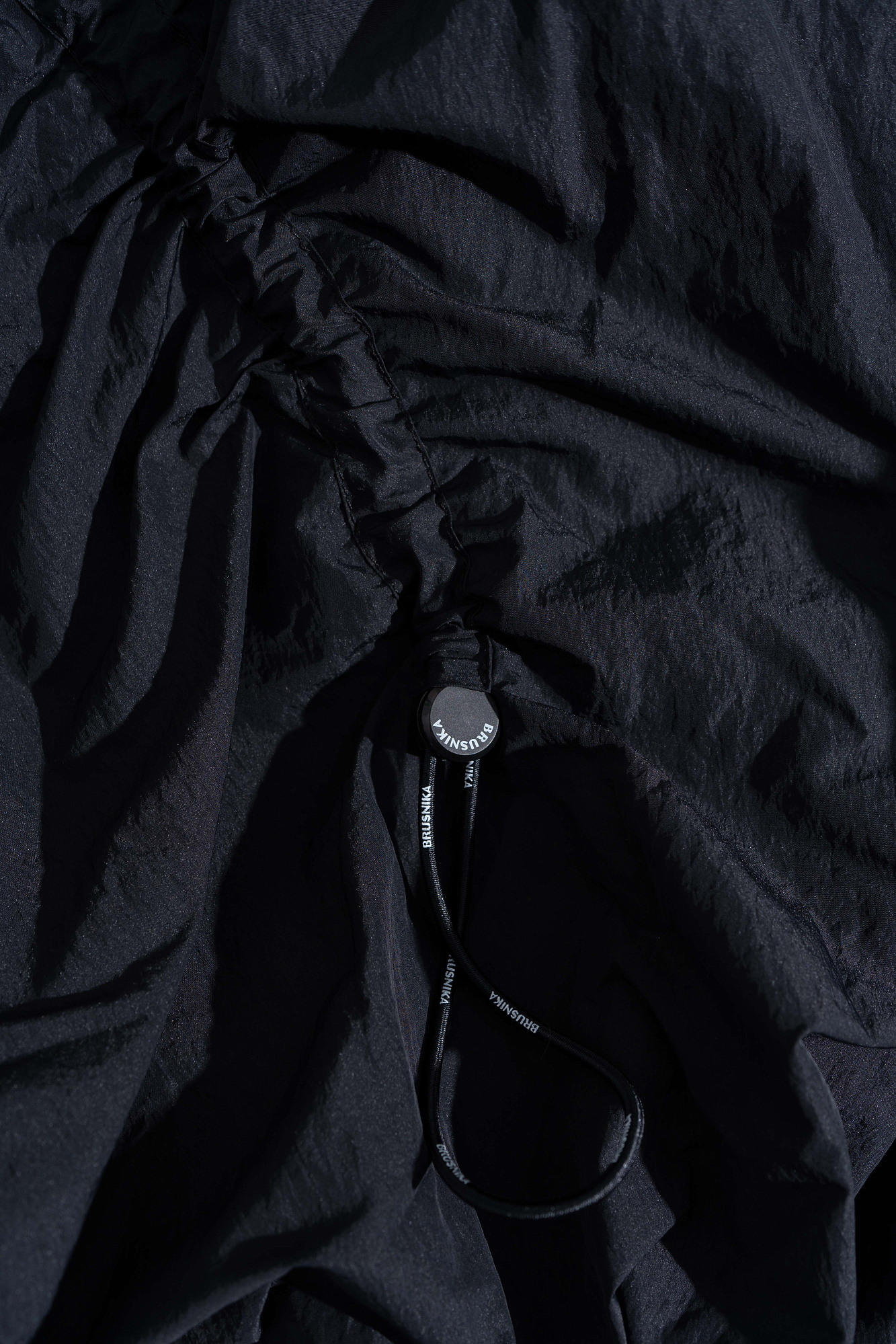 Юбка-баллон длины мини из нейлона. Модель с поясом на резинке и регулируемыми оборками по бокам.