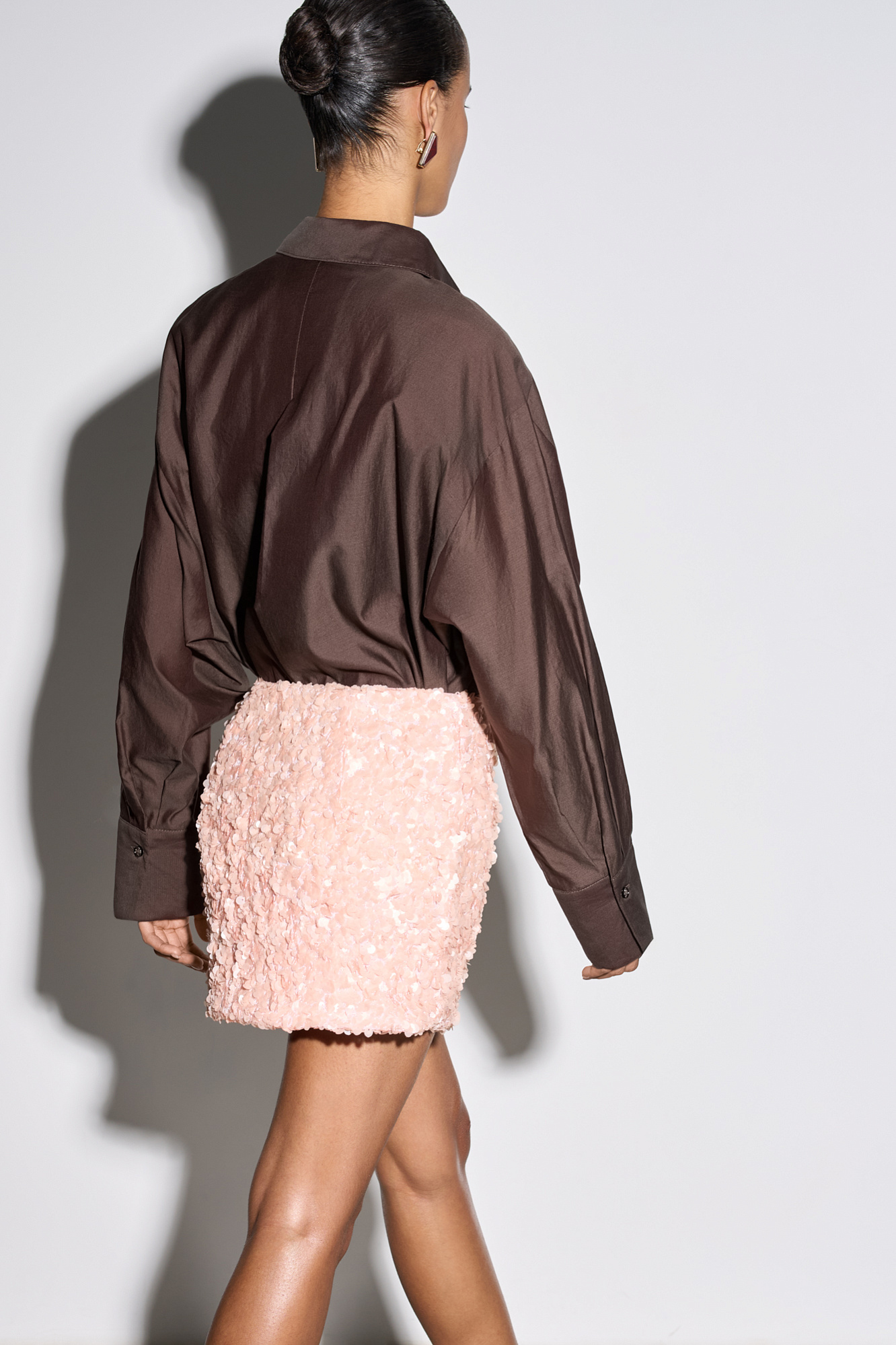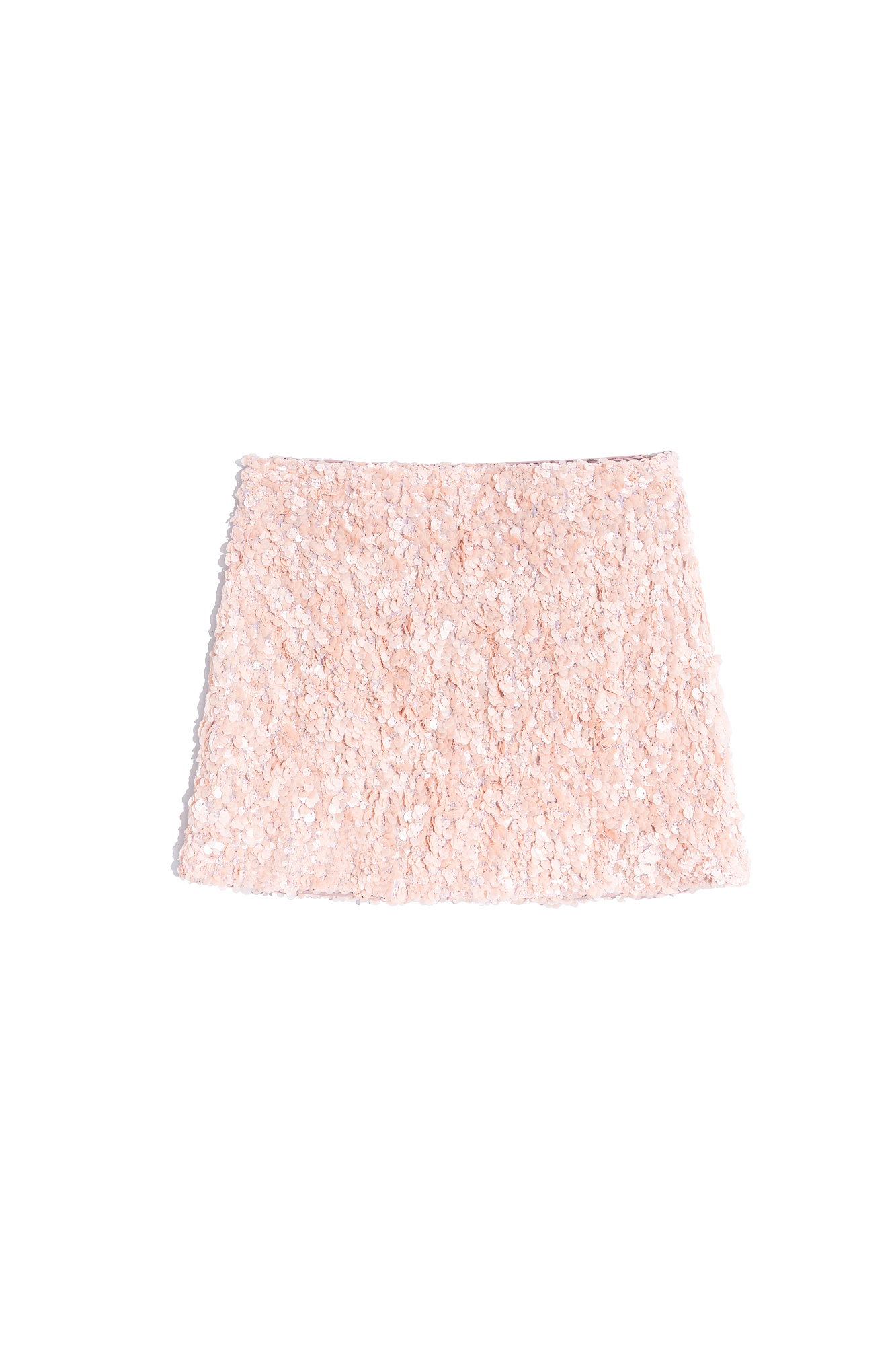 Юбка длины мини, расшитая пайетками. Изделие на подкладке. Застежка на потайную на молнию.