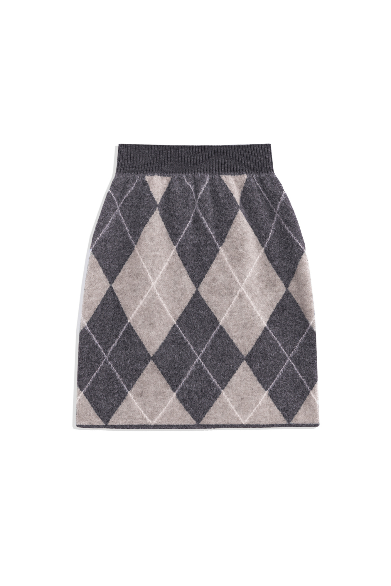 Трикотажная юбка мини из шерсти и кашемира с узором аргайл. Модель по фигуре с широким эластичным поясом в рубчик.