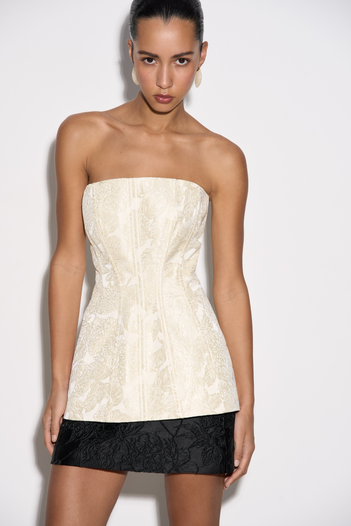 Юбка длины мини из жаккарда. Модель по фигуре с застежкой на молнию сзади. Изделие на подкладке.