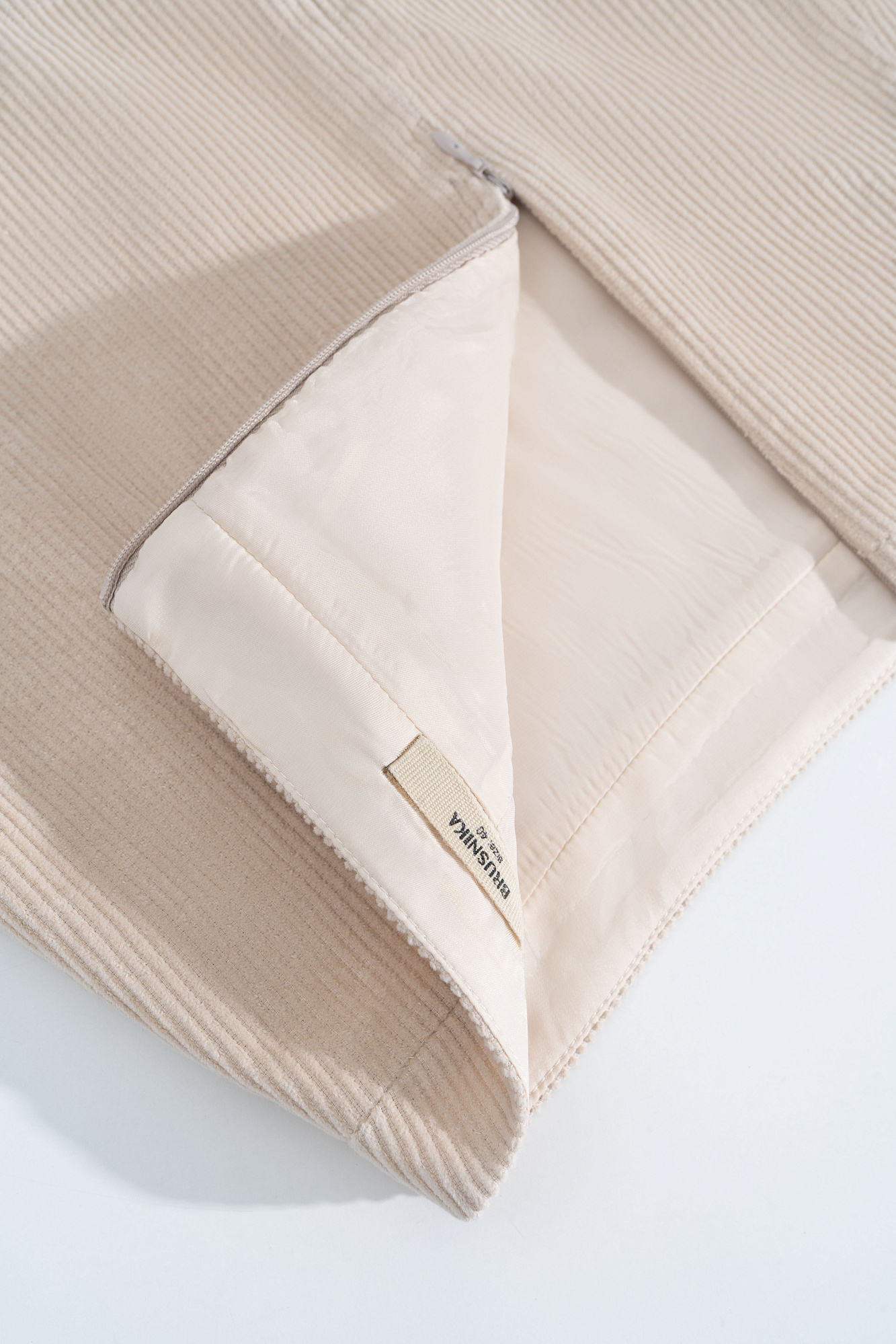 Вельветовая юбка длины мини. Модель с двумя карманами по бокам и застежкой на молнию сзади. Изделие на подкладке.