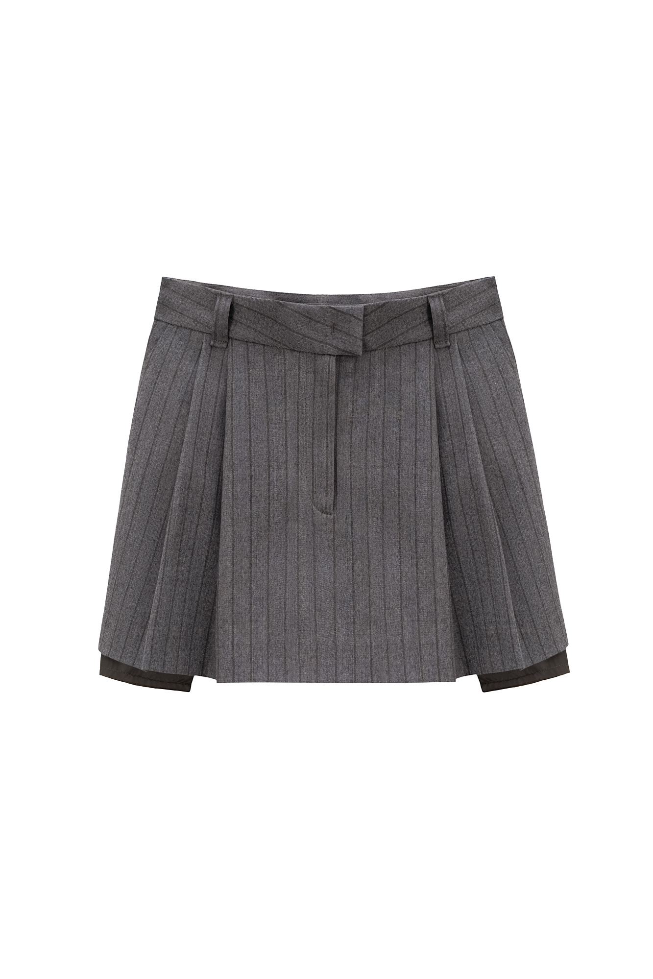 Юбка длины мини в полоску. Модель свободного силуэта с застежкой на молнию и крючок. На подкладке. Дополнить образ можно жакетом в таком же стиле.