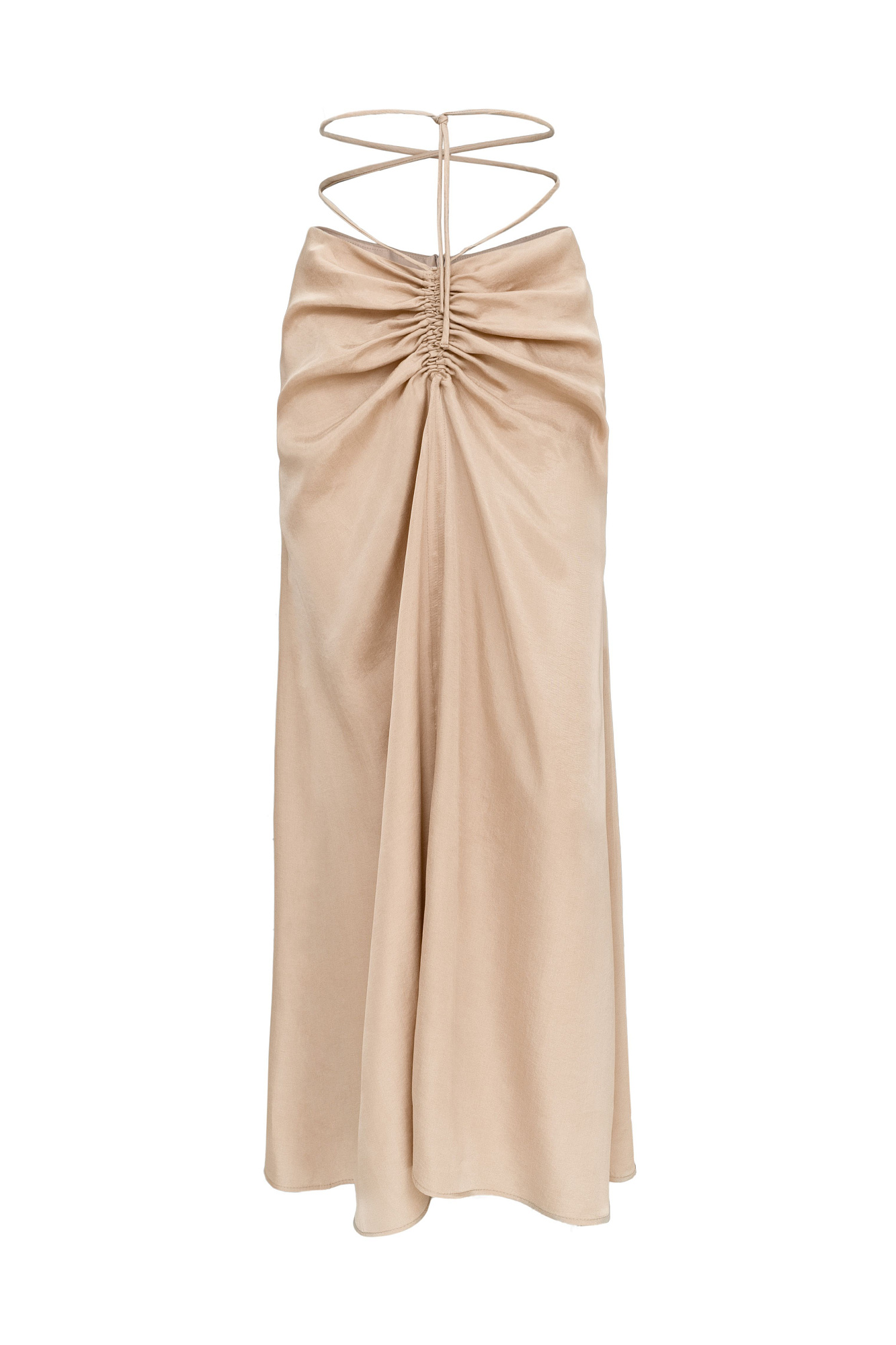 Юбка из 100% купры с драппировкой и кулиской по середине. Дополнить образ можно рубашкой из такого же материала.