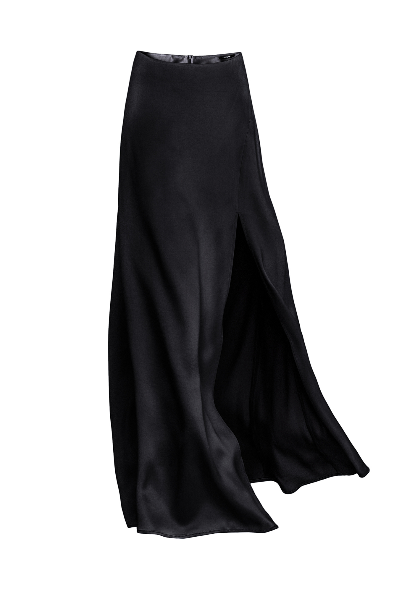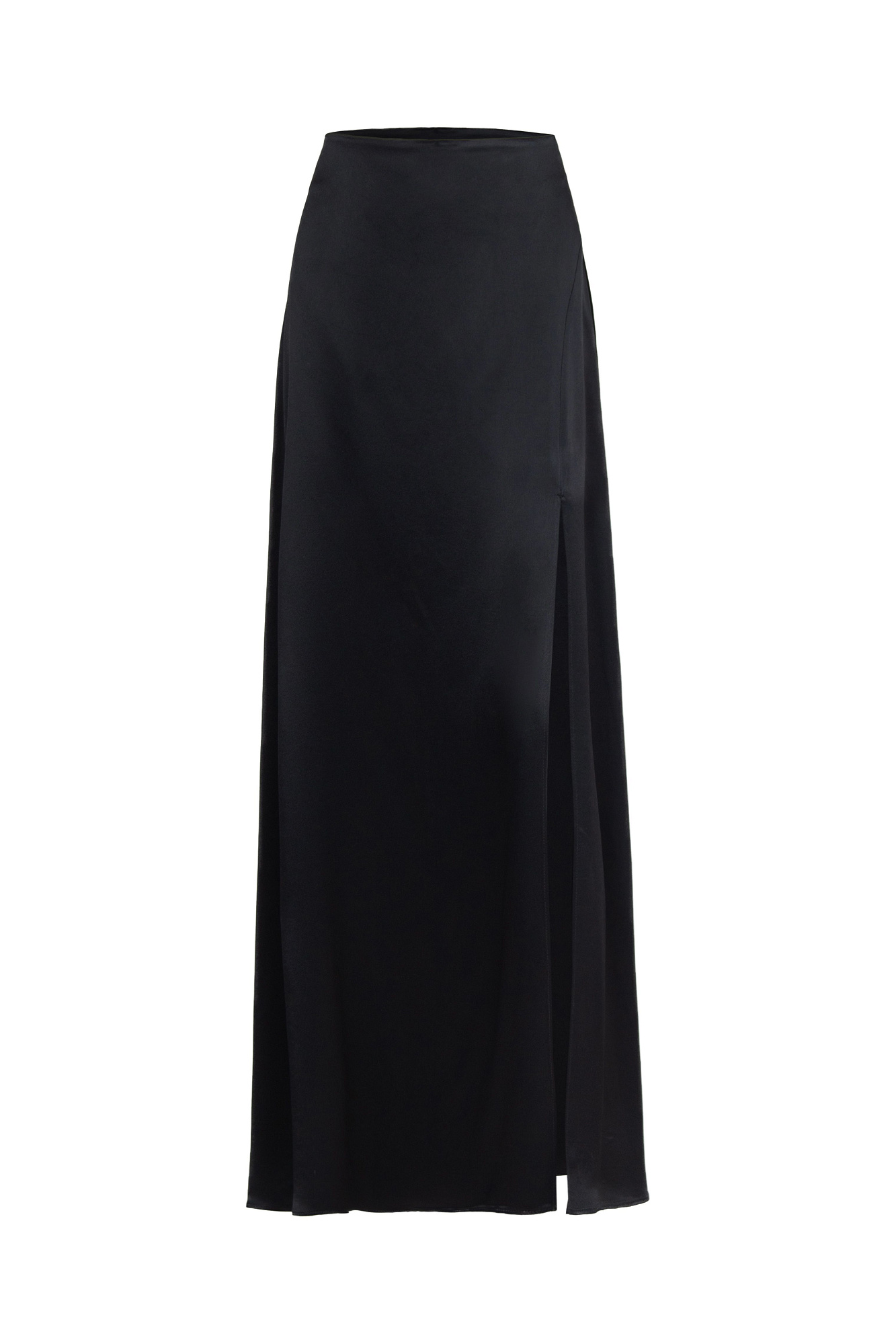 Атласная юбка длины макси из 100% вискозы с разрезом и застежкой на молнию.