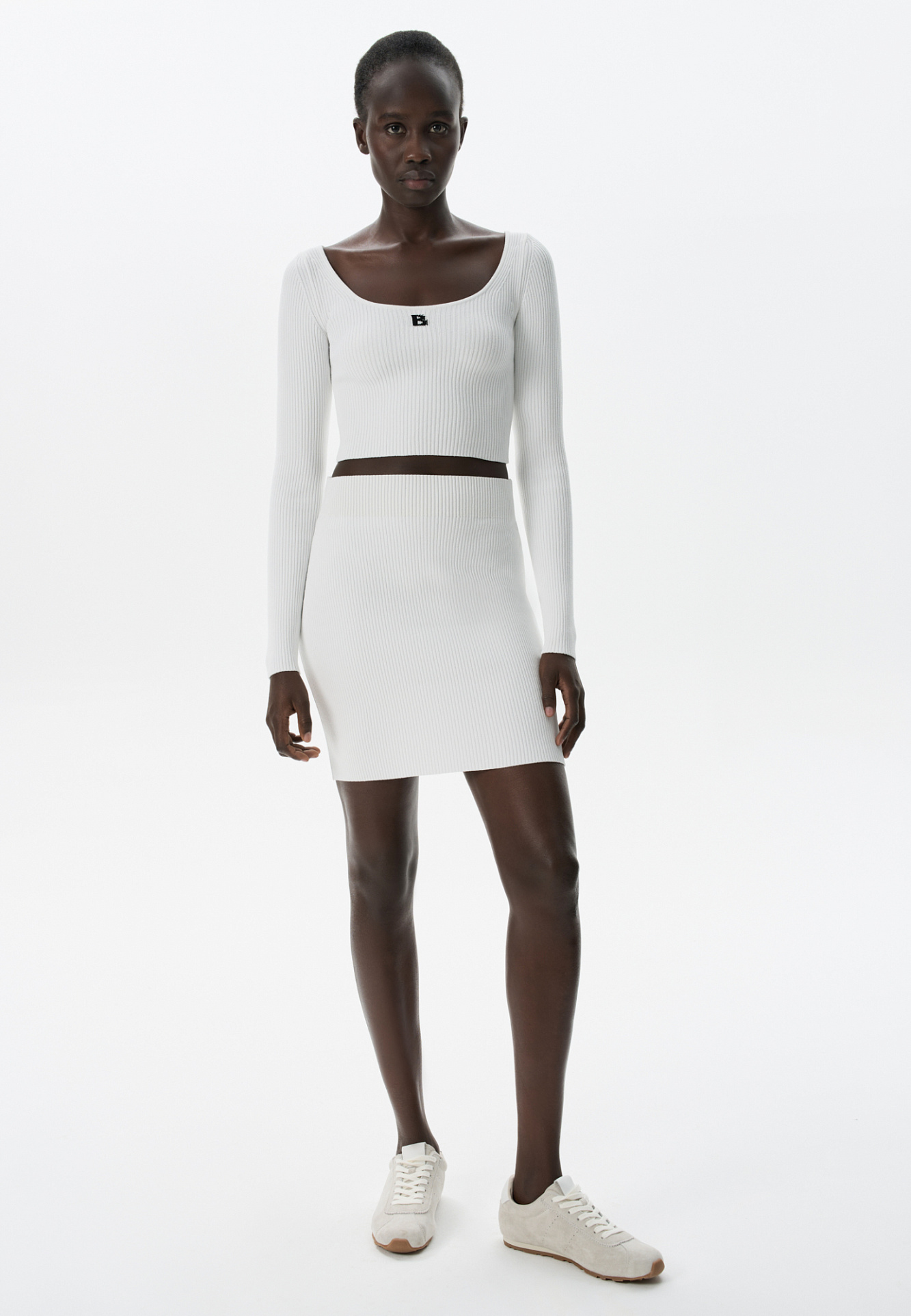 Трикотажная юбка длины мини из вискозы. Модель приталенного силуэта с эластичным поясом на резинке.