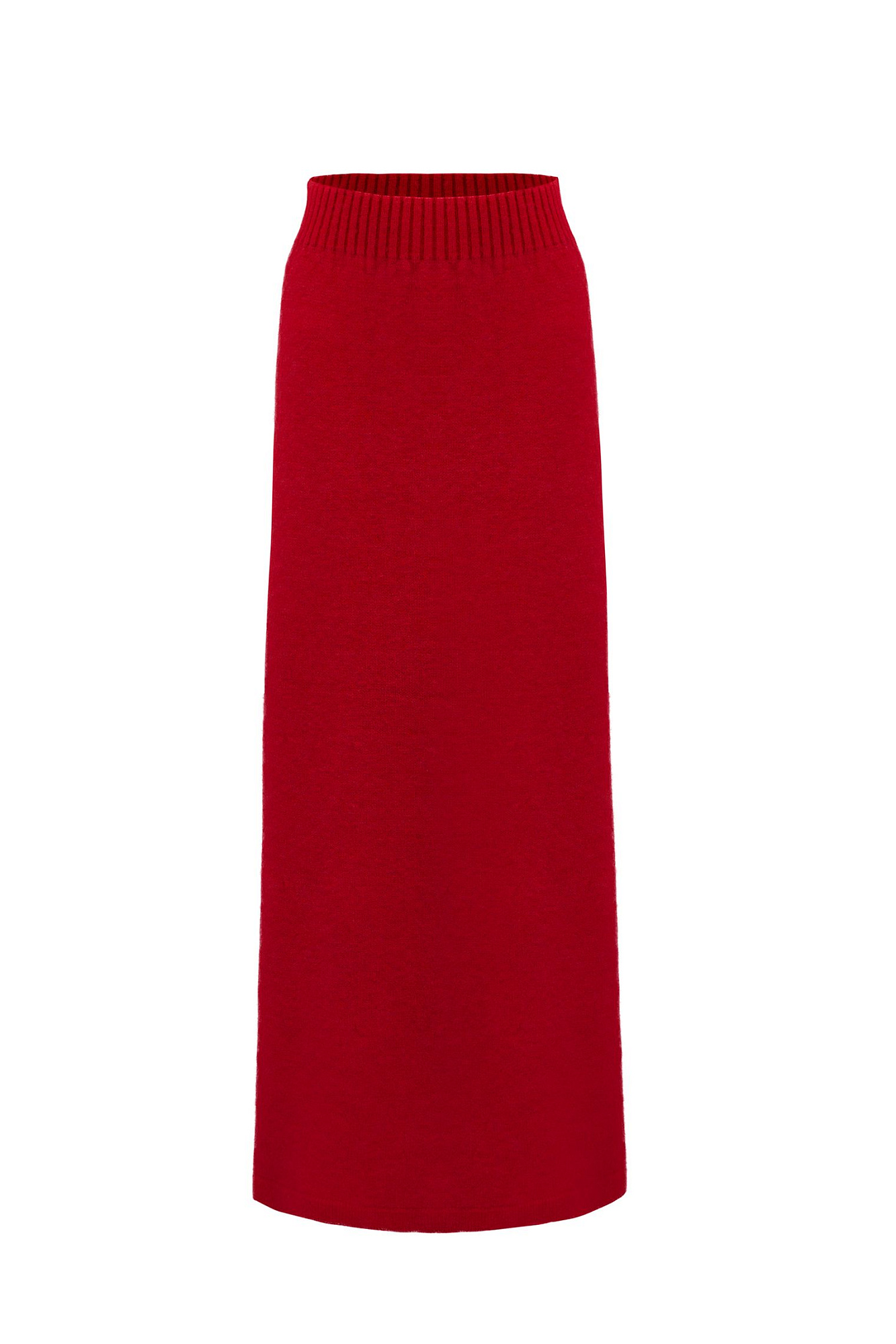 Трикотажная юбка длины макси из смесовой шерсти. Модель трапециевидной формы с эластичным поясом в рубчик.