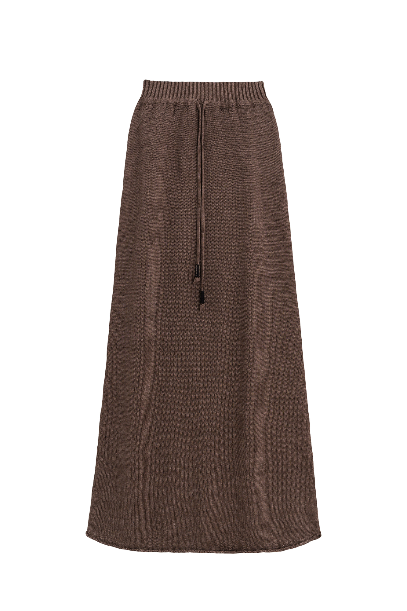 Трикотажная юбка длины макси из 100% льна. Модель свободного силуэта с эластичным поясом в рубчик на кулиске.