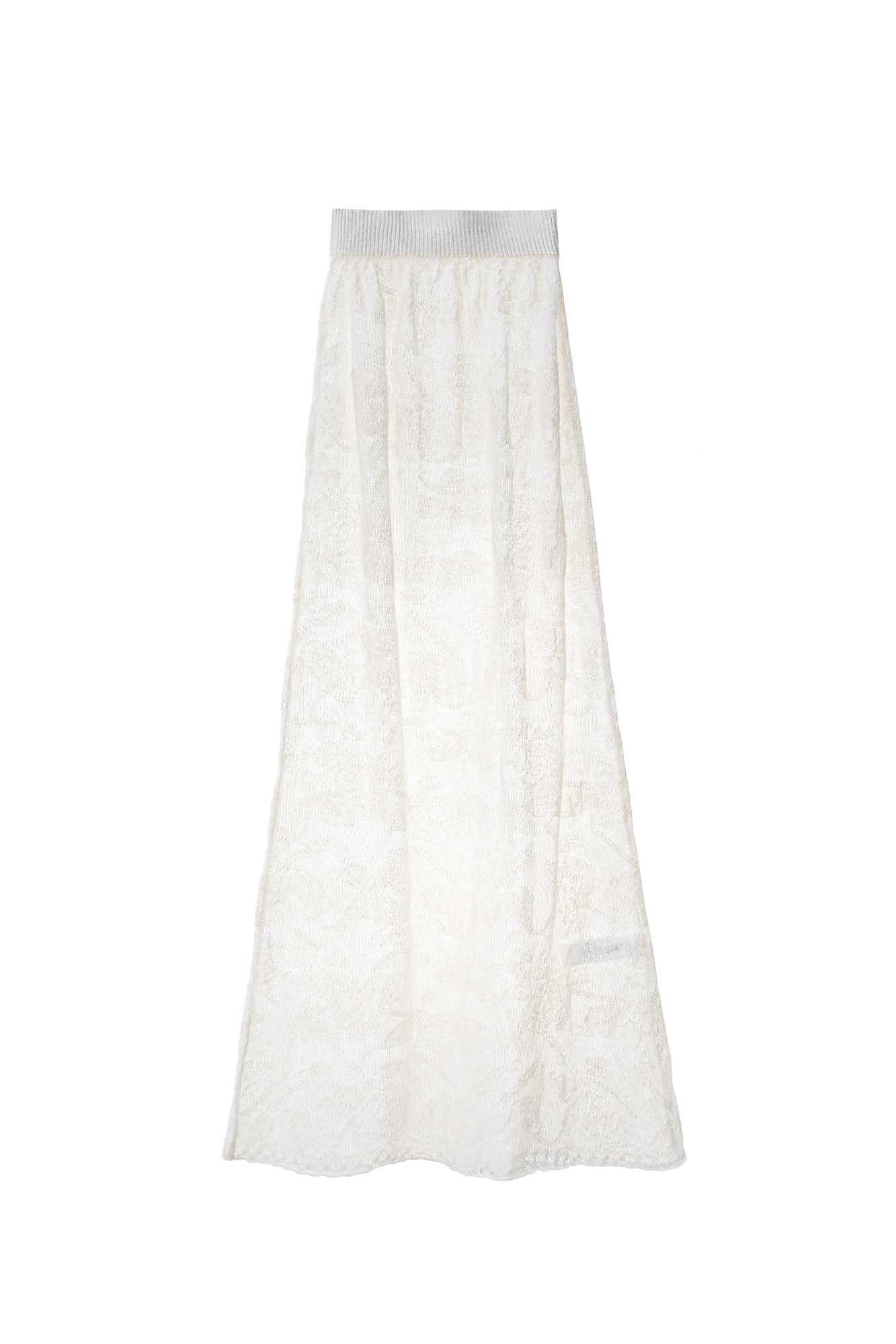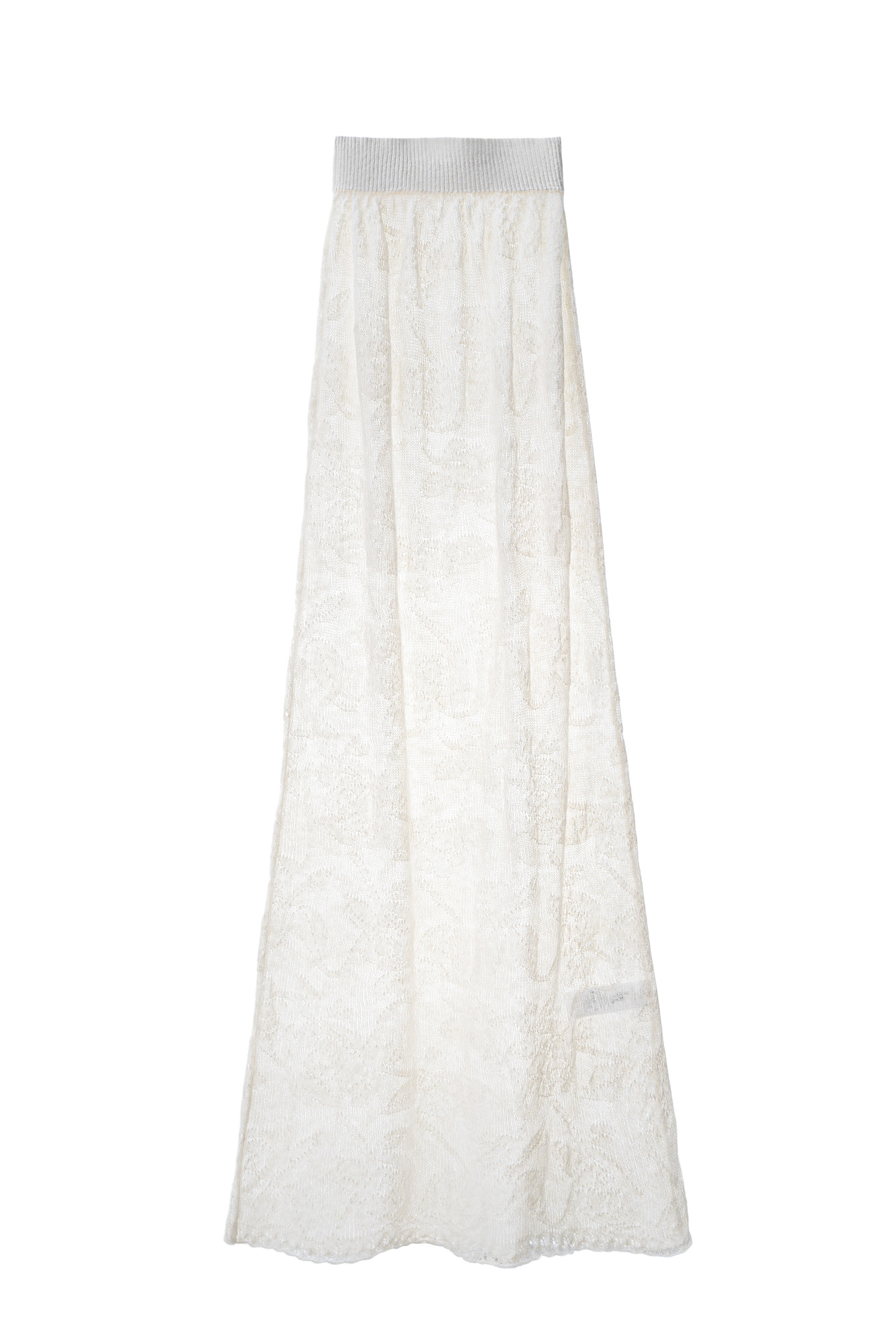 Ажурная юбка длины макси из шерсти беби альпака и супер кид мохера. Модель с эластичным поясом. Низ изделия декорирован кружевной каймой. Без подкладки.