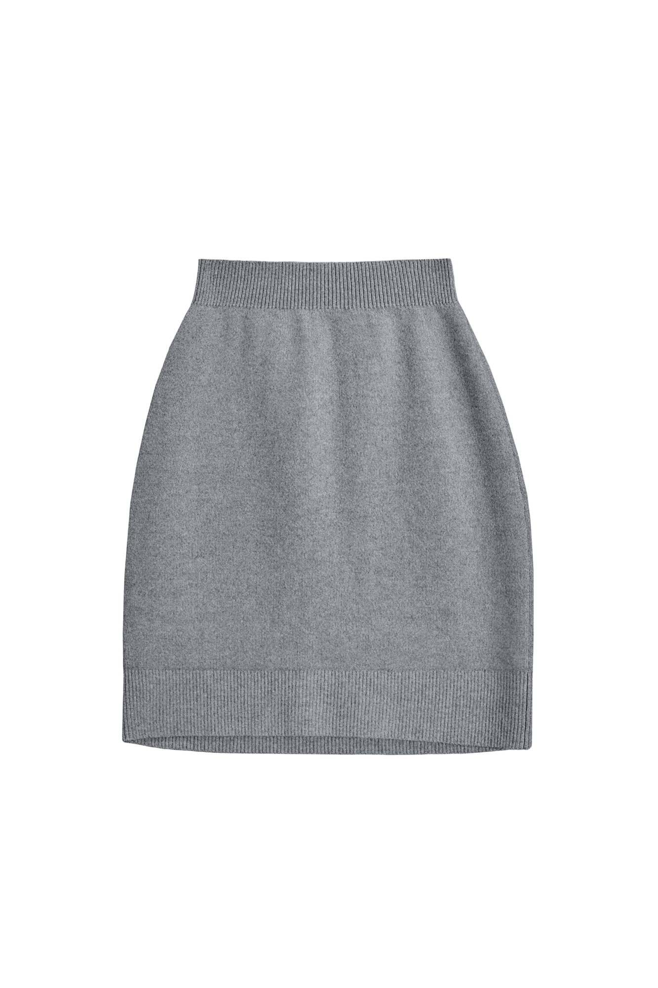 Трикотажная юбка длины мини из шерсти с добавлением кашемира. Модель по фигуре с эластичным поясом на резинке.