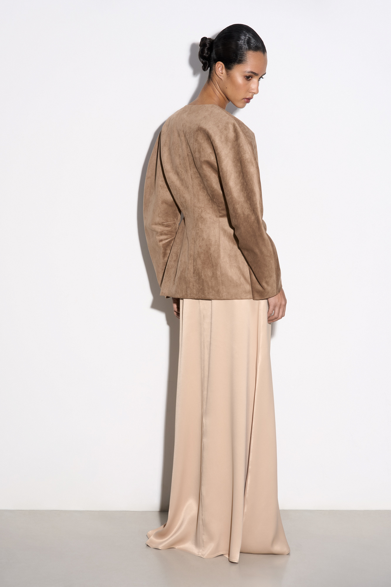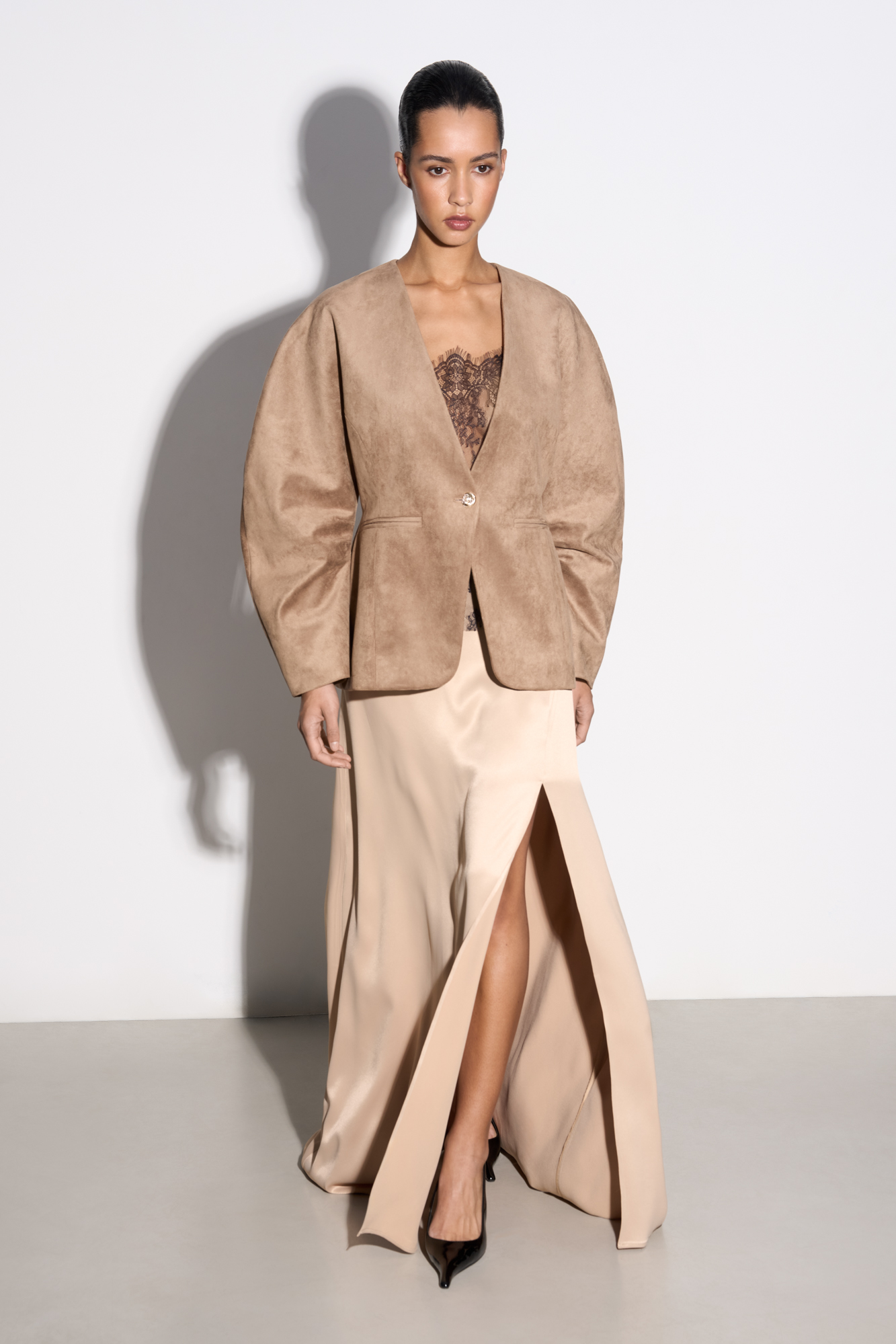 Атласная юбка длины макси из 100% вискозы с разрезом и застежкой на молнию.
