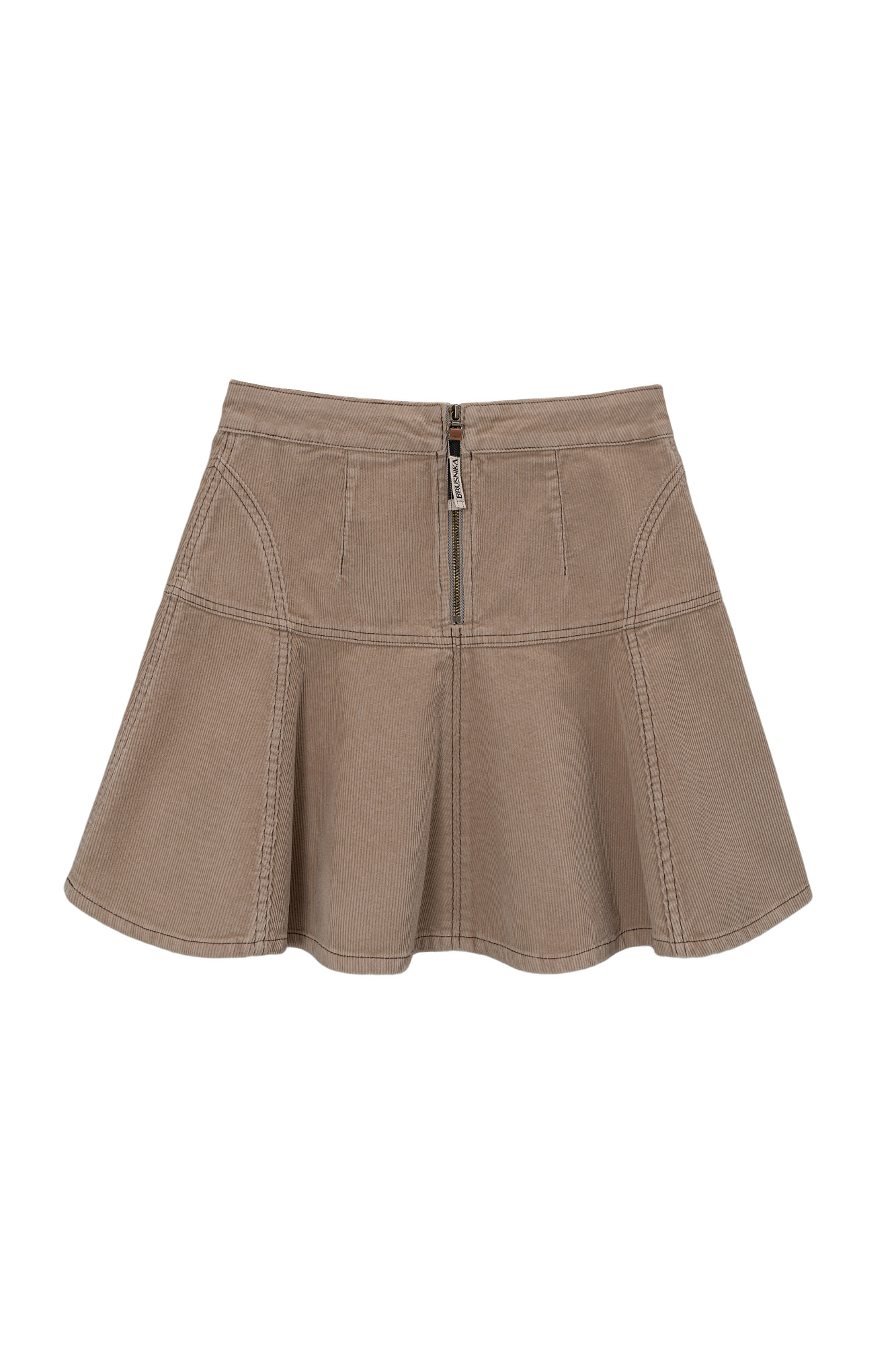 Вельветовая юбка длины мини с брендированным ярлыком на поясе и застежкой на молнию сзади. Дополнить образ можно бомбером.