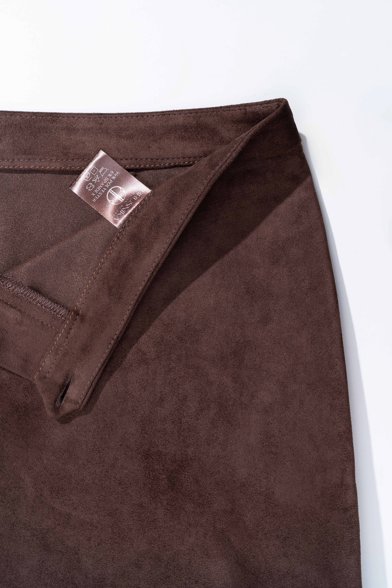 Юбка длины мини из ткани с имитацией внешнего вида и свойств натуральной замши. Застежка на скрытую пуговицу и молнию спереди.
