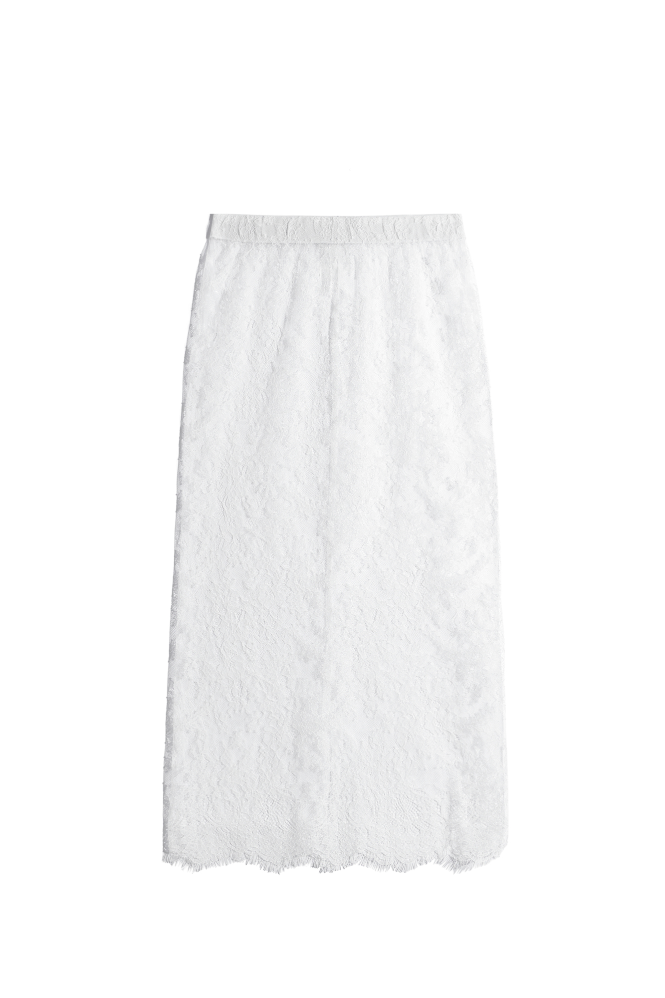 Юбка длины миди из тонкого кружева. Модель с высоким разрезом сзади и застежкой на скрытую молнию. Изделие выполнено без подкладки.