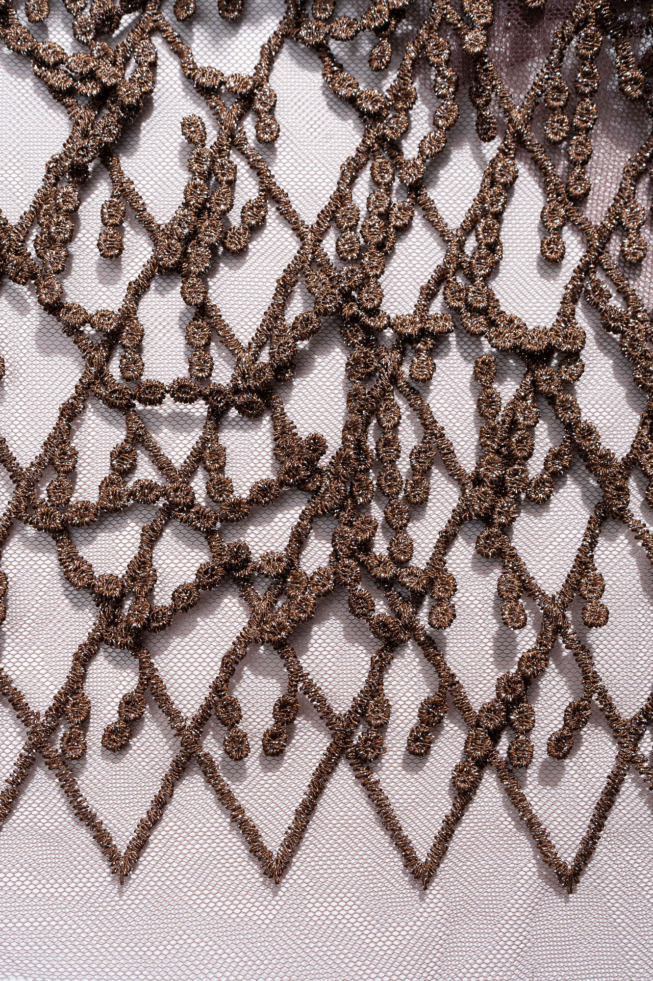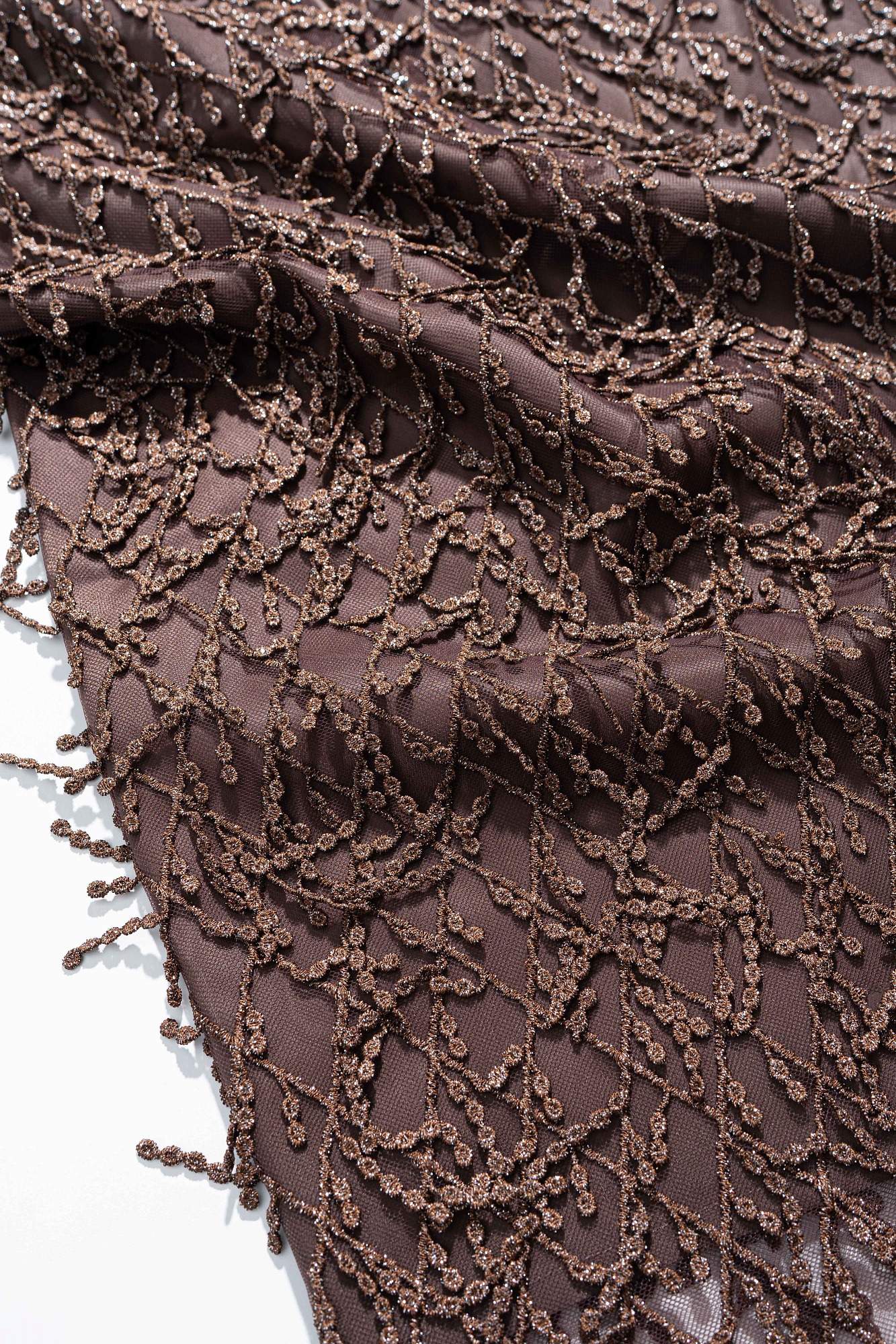 Юбка длины миди с объемным геометрическим дизайном и бахромой. Застежка на молнию сзади. Изделие выполнено на подкладке.