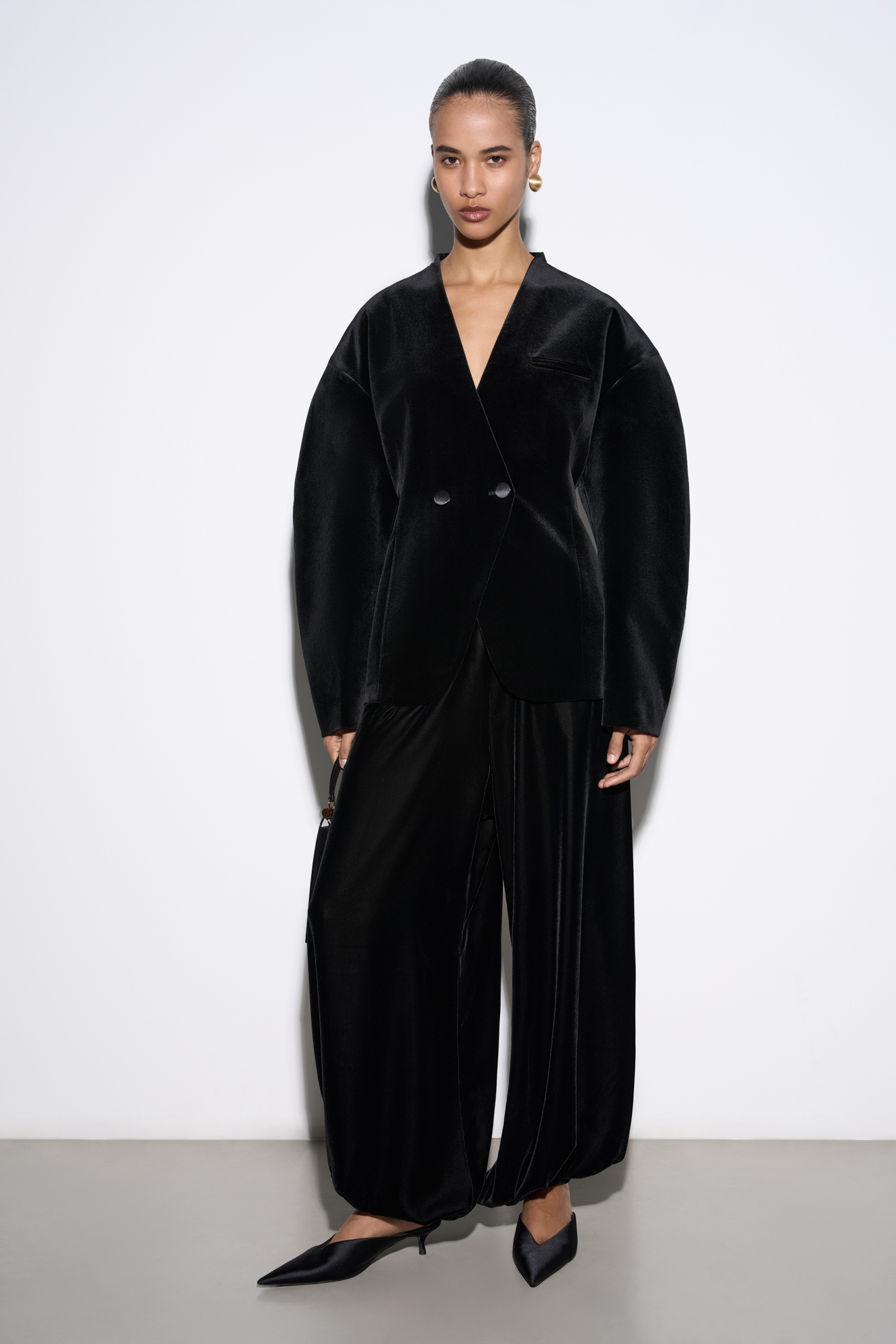 Бархатный жакет с объемными рукавами
