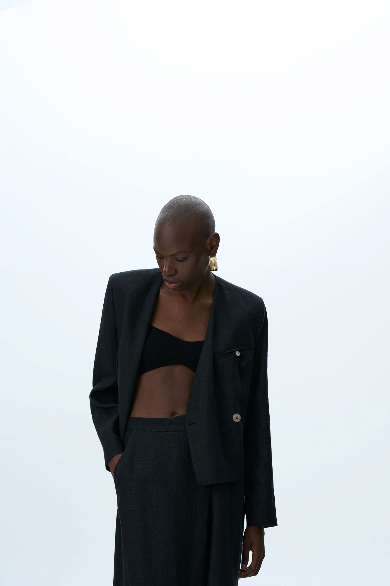 Укороченный жакет на запах из 100% льна