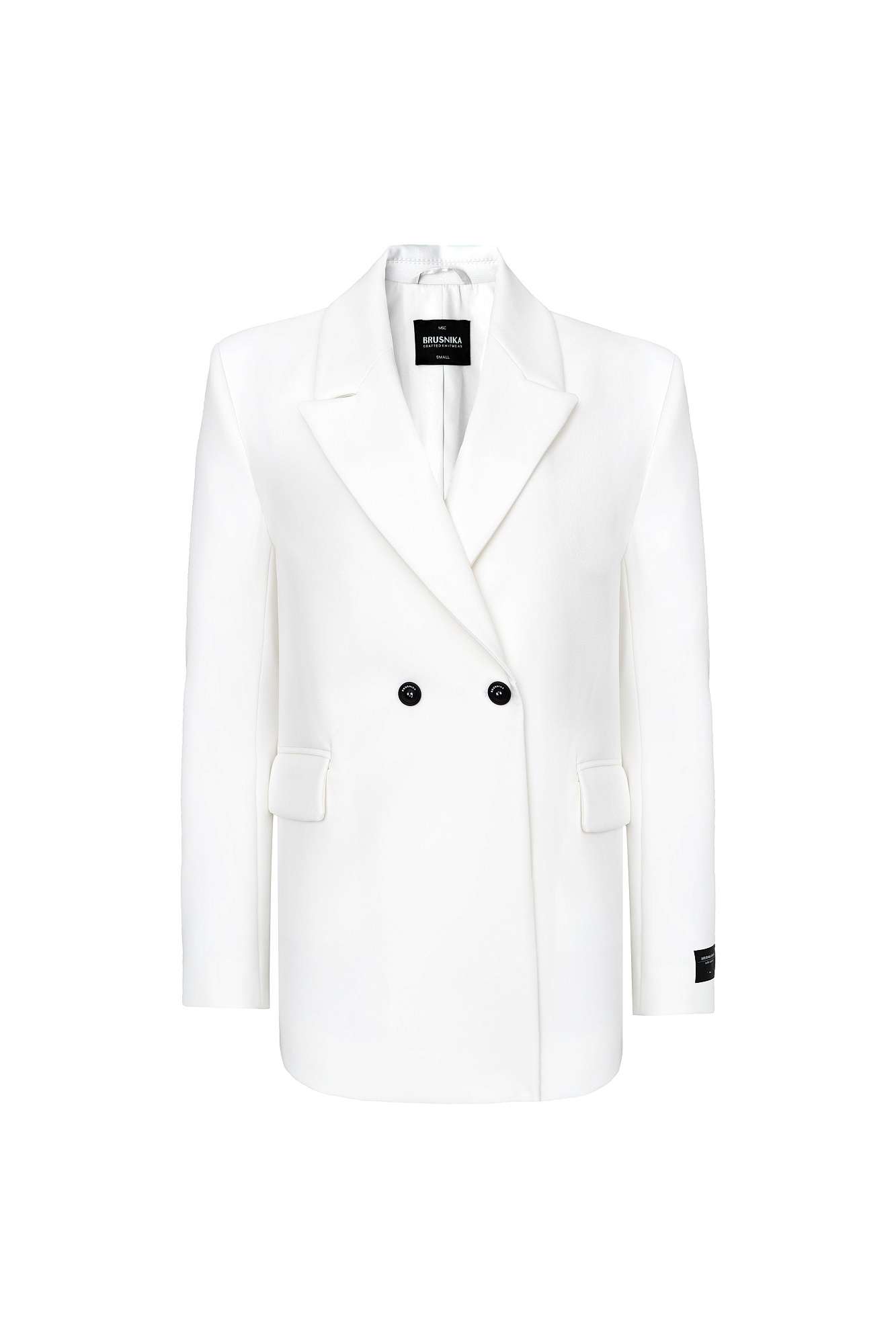 Классический жакет из поливискозы. Накладные карманы, брендированный ярлык на рукаве. Застежка на пуговицы.