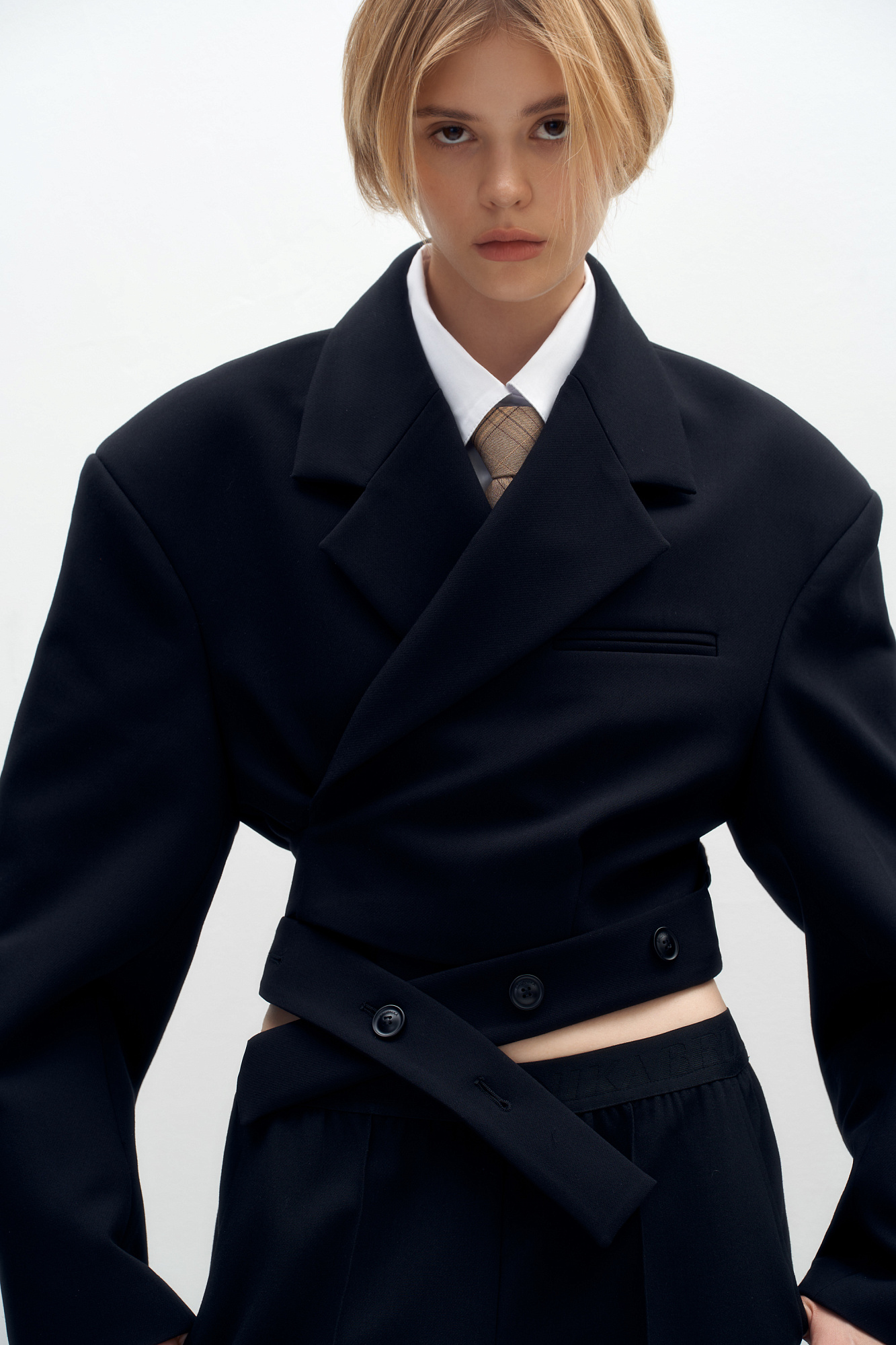 Укороченный жакет на запах с поясом