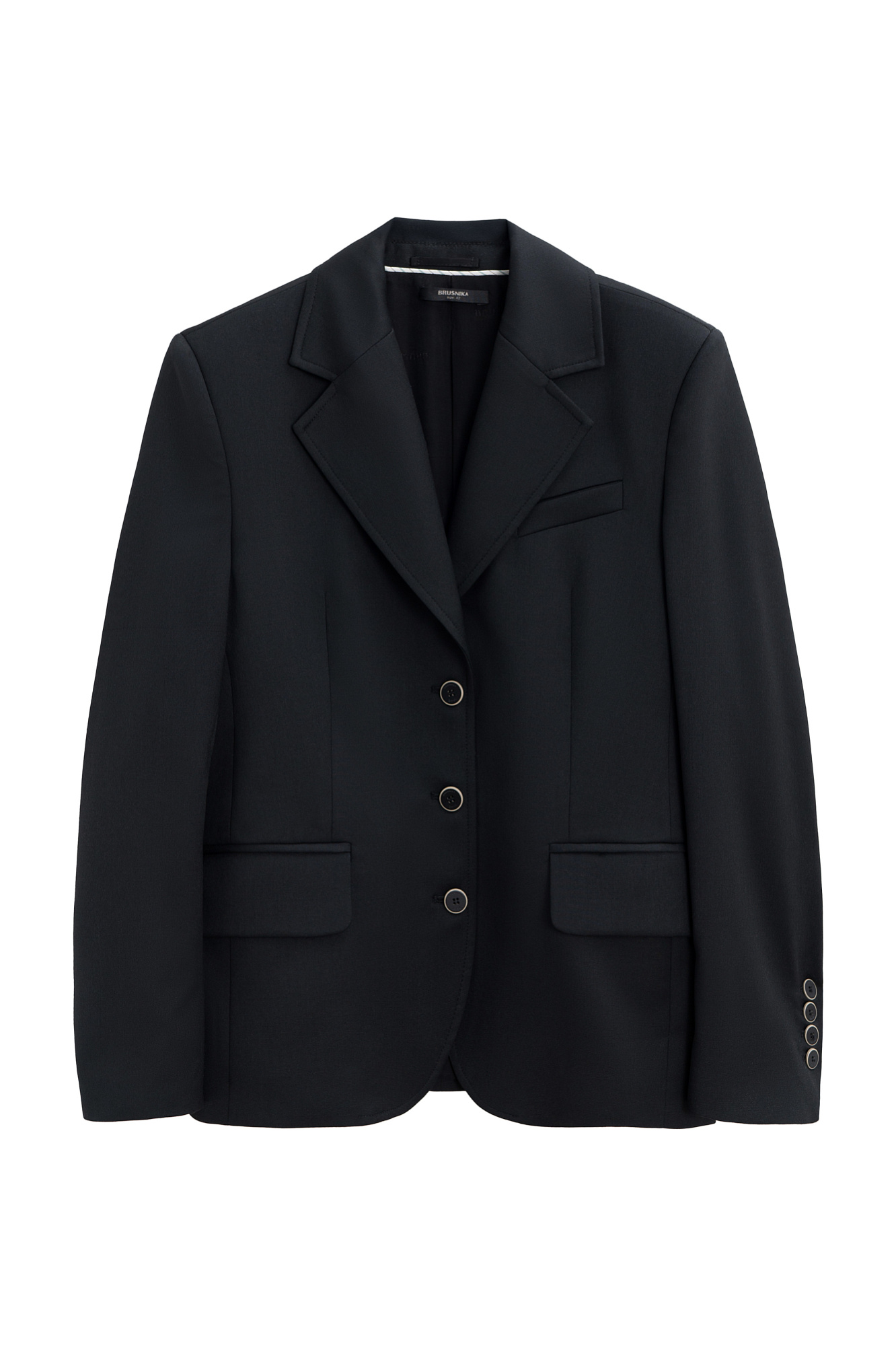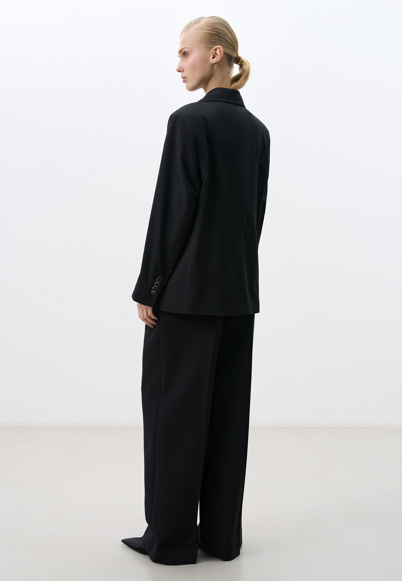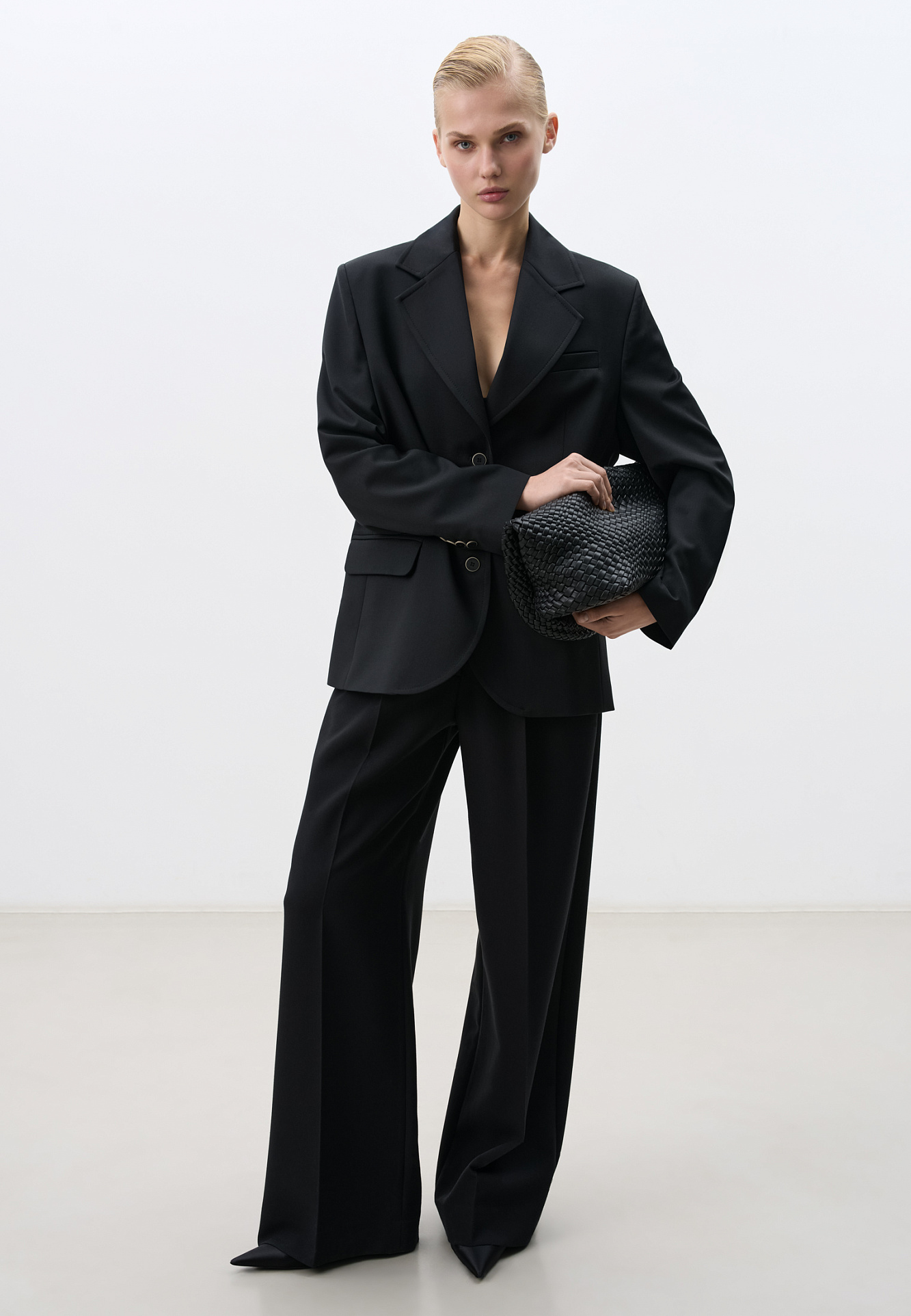 Однобортный жакет из шерсти. Модель свободного силуэта с лацканами, боковыми карманами с клапанами и карманом на груди. Застежка на три пуговицы. Изделие выполнено на подкладке. Дополнить образ можно брюками или юбкой.