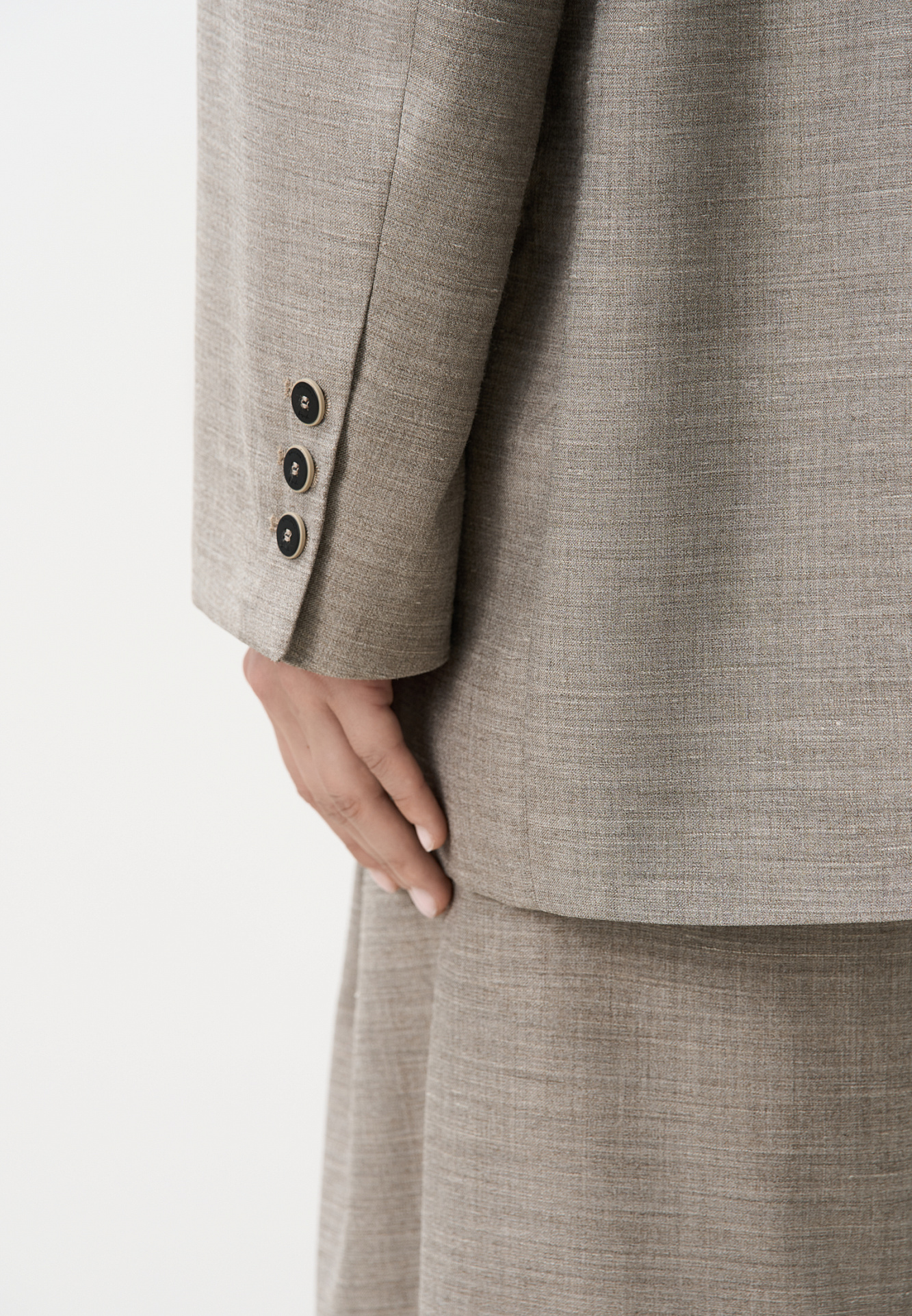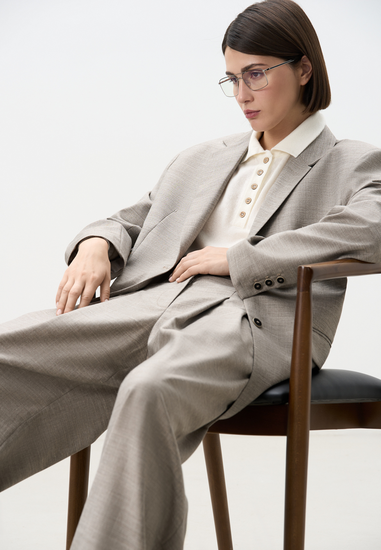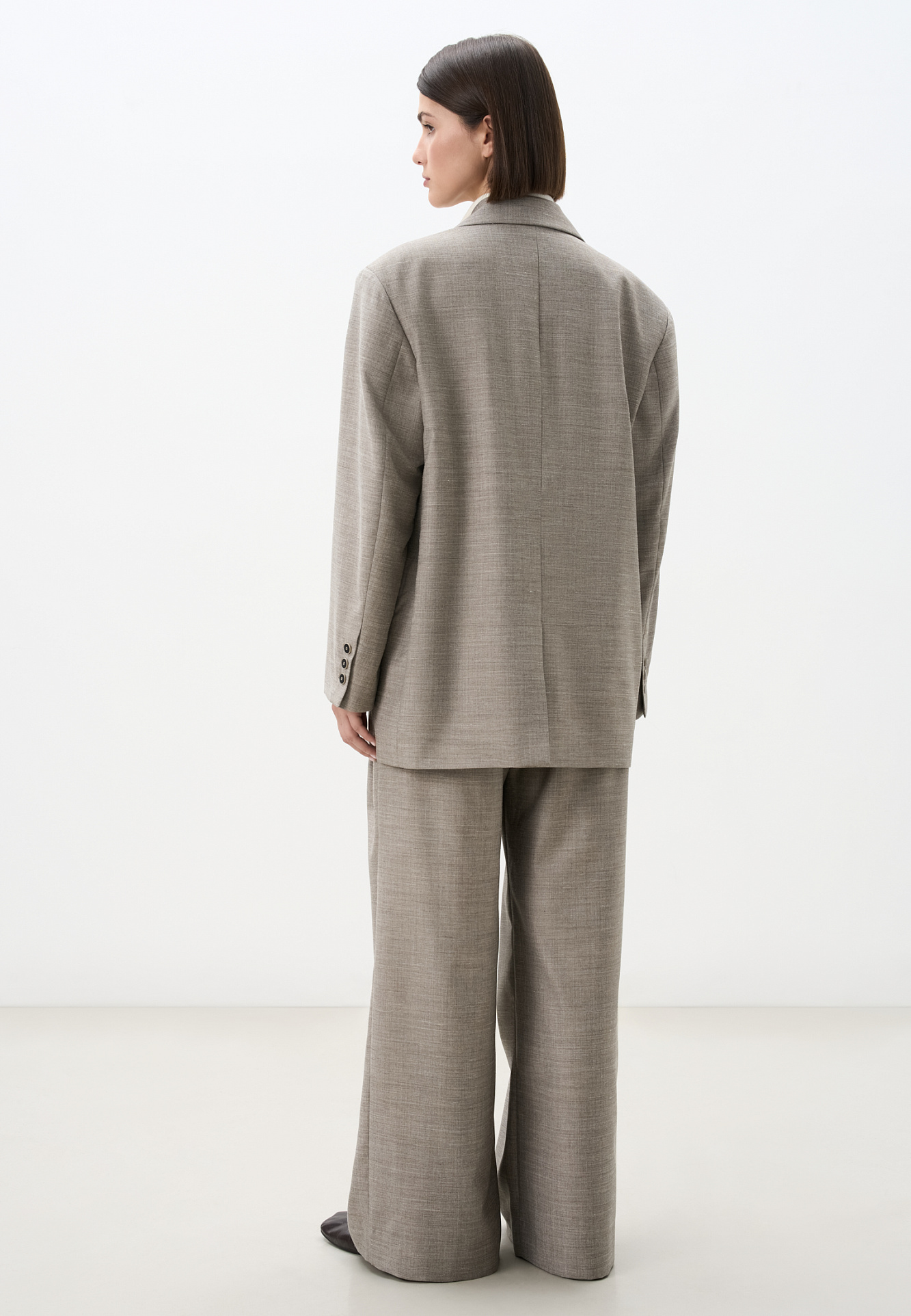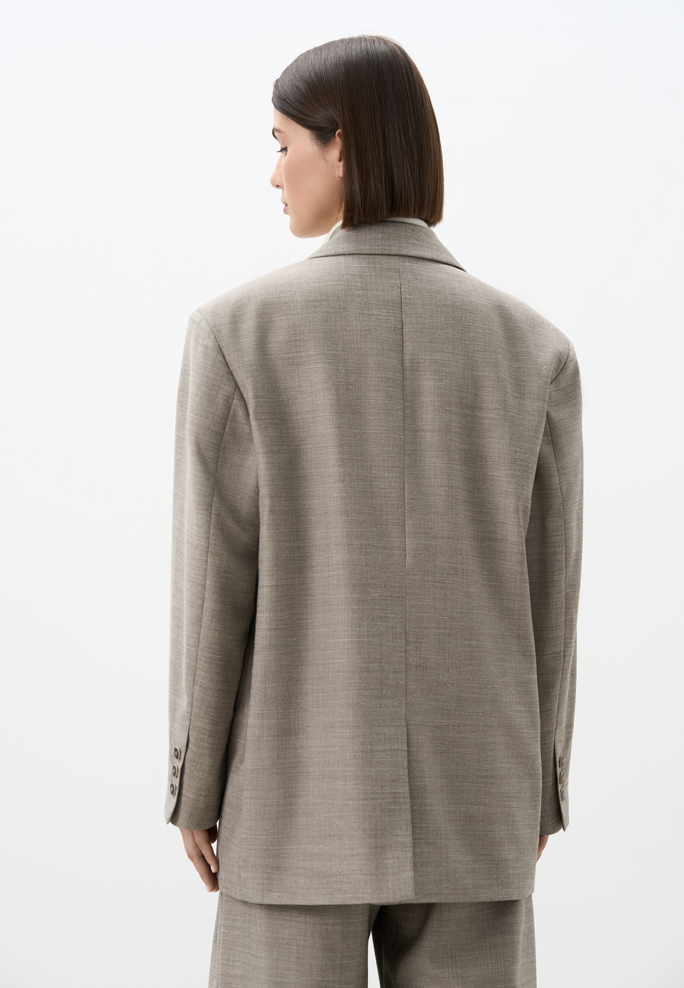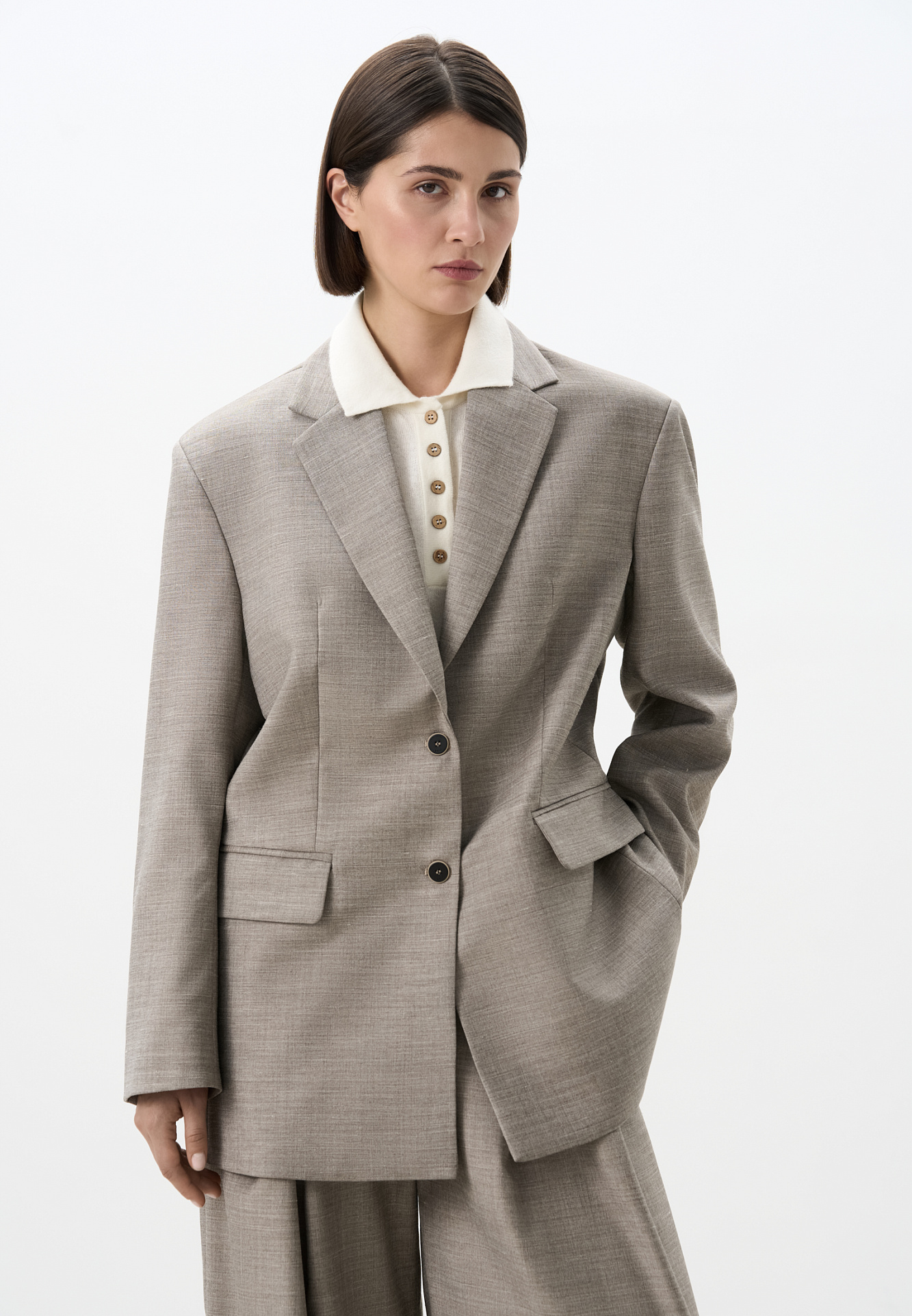 Классический жакет из фланели. Модель прямого кроя с лацканами и прорезными карманами с клапанами. Застежка на две пуговицы. Изделие на подкладке.