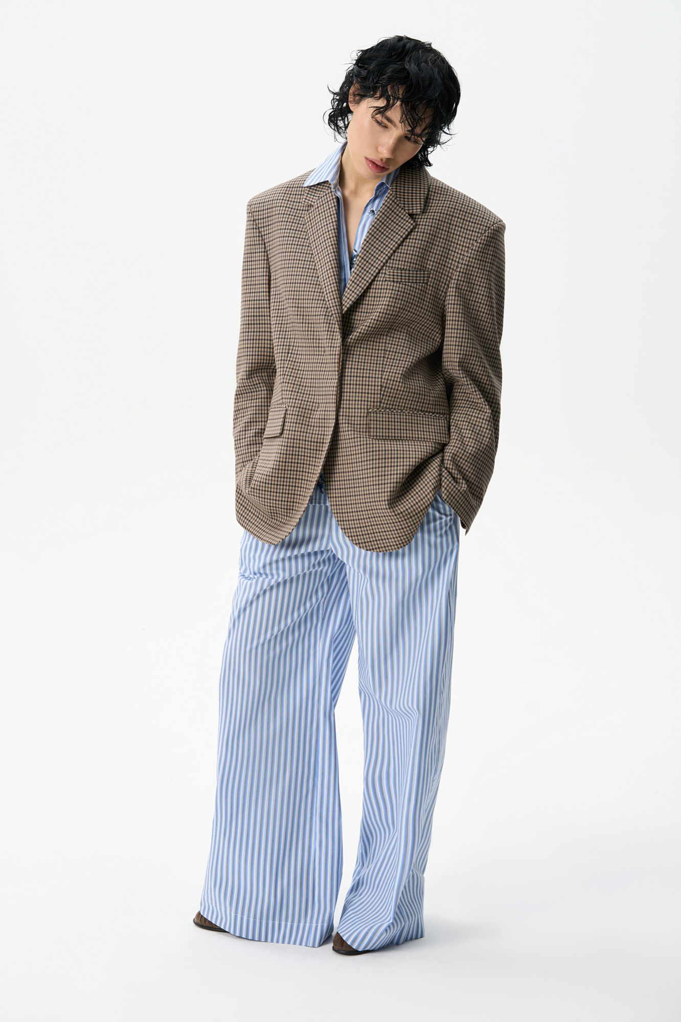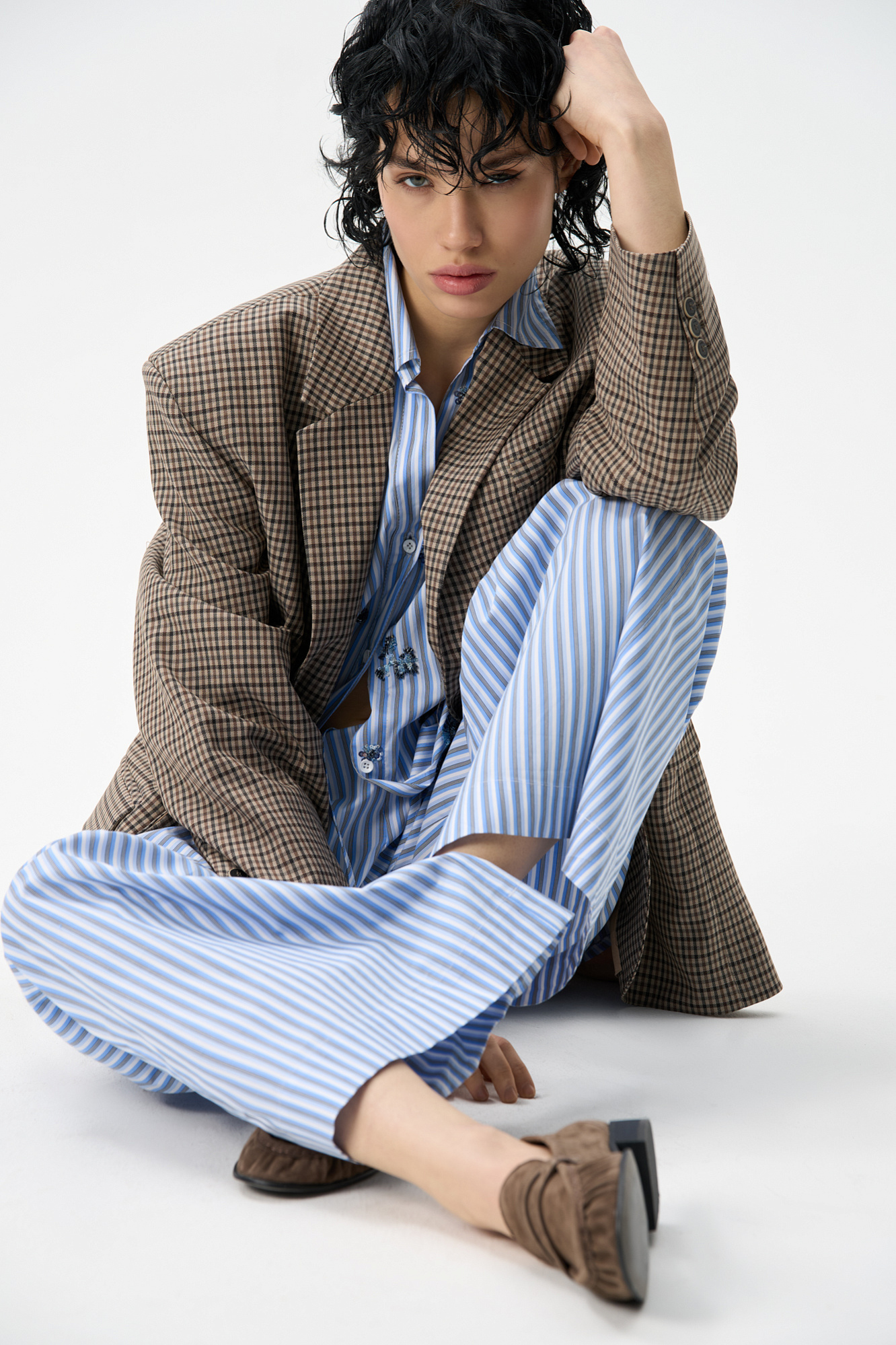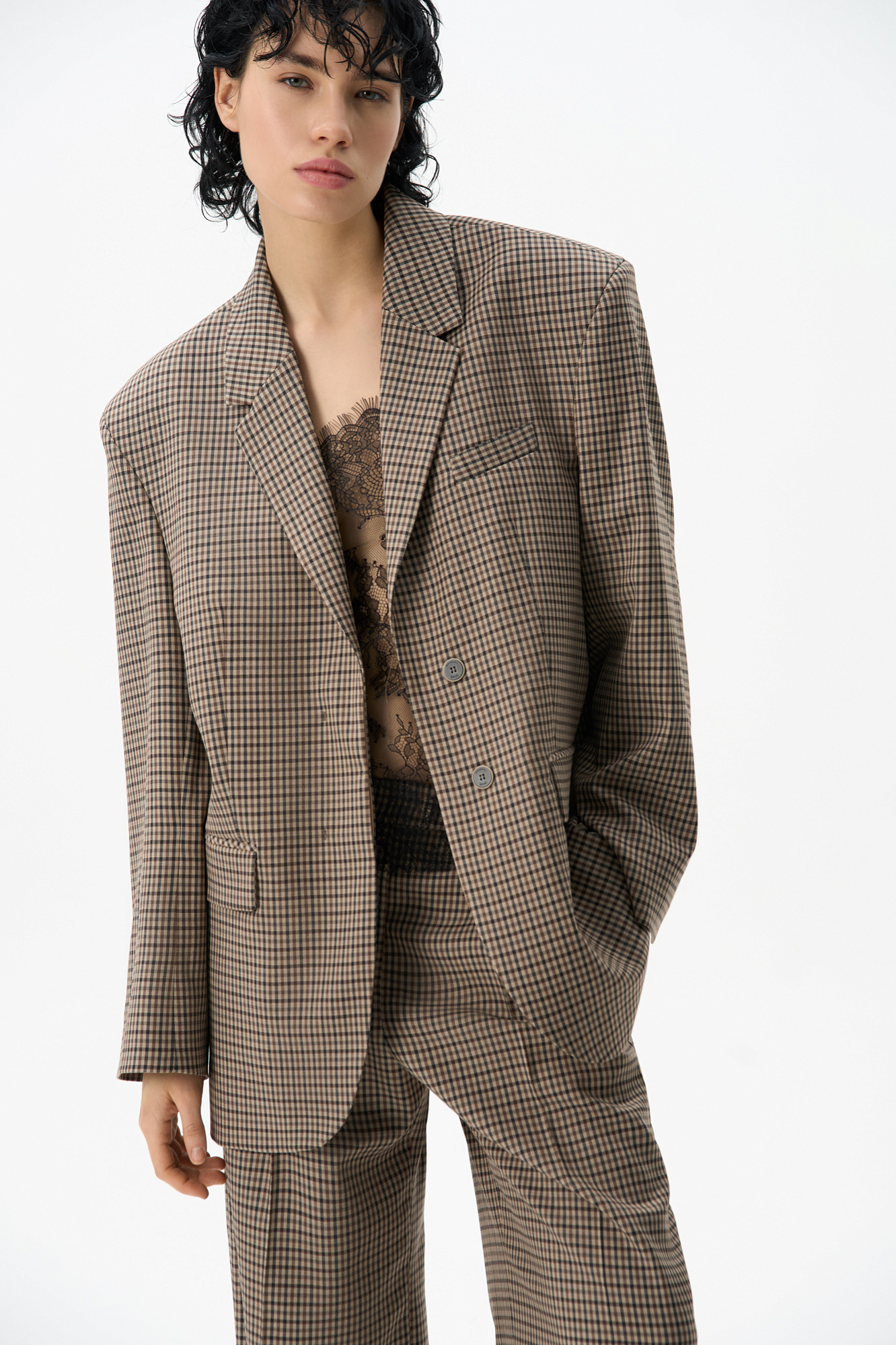 Однобортный жакет в клетку виши из шерсти. Модель прямого кроя с узкими лацканами, подплечниками, боковыми карманами с клапанами и карманом на груди. Изделие выполнено на подкладке. Дополнить образ можно юбкой или брюками.