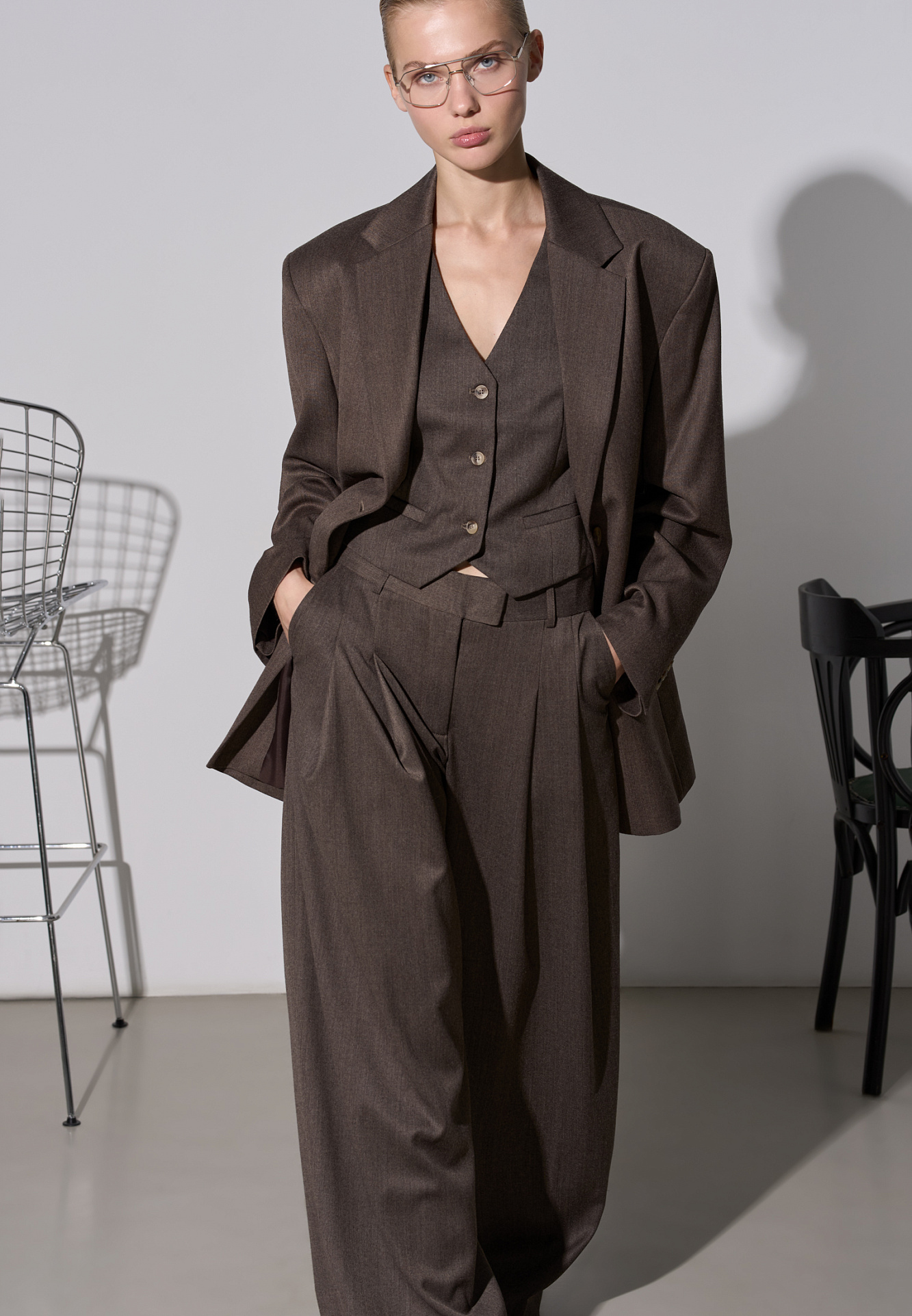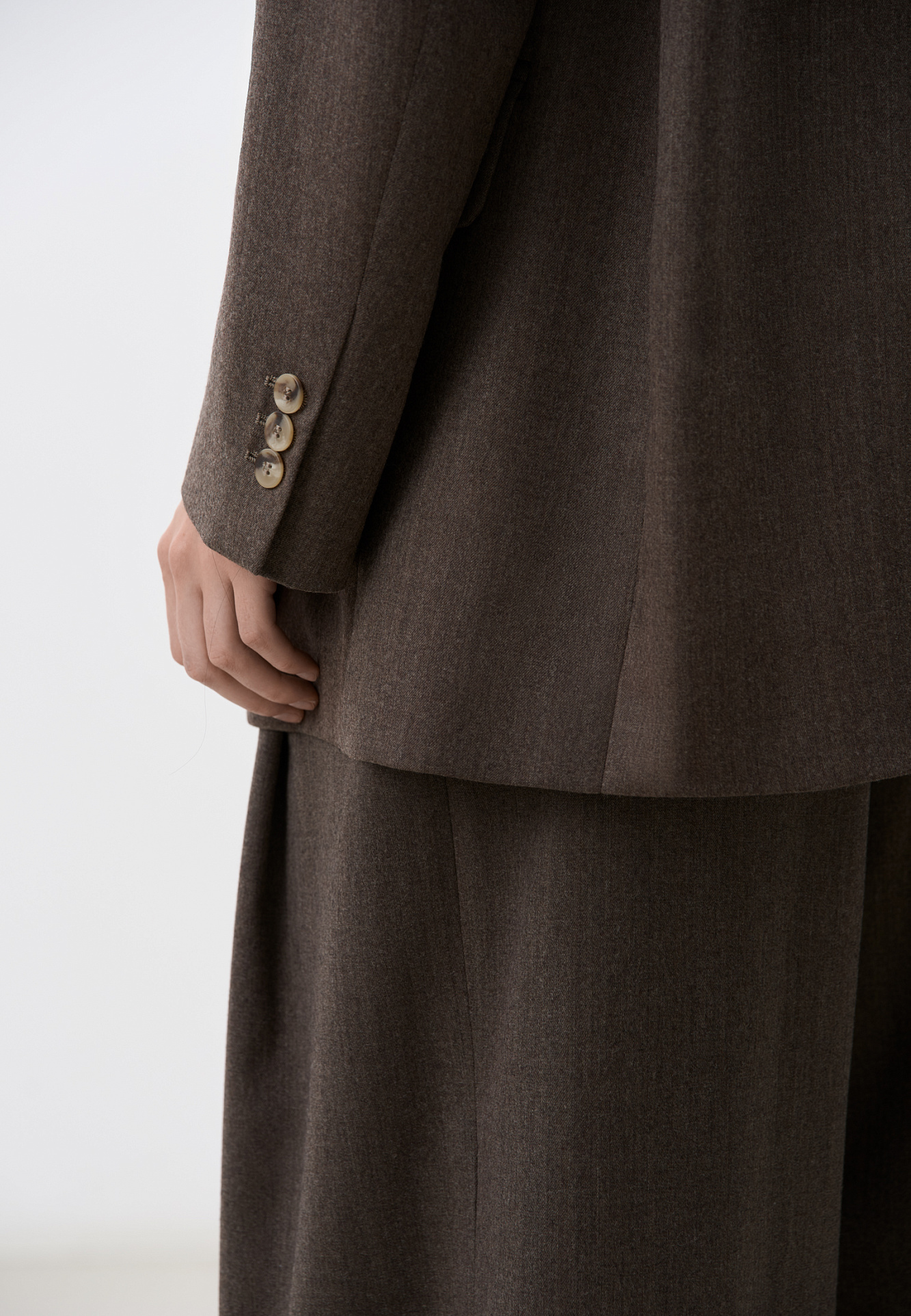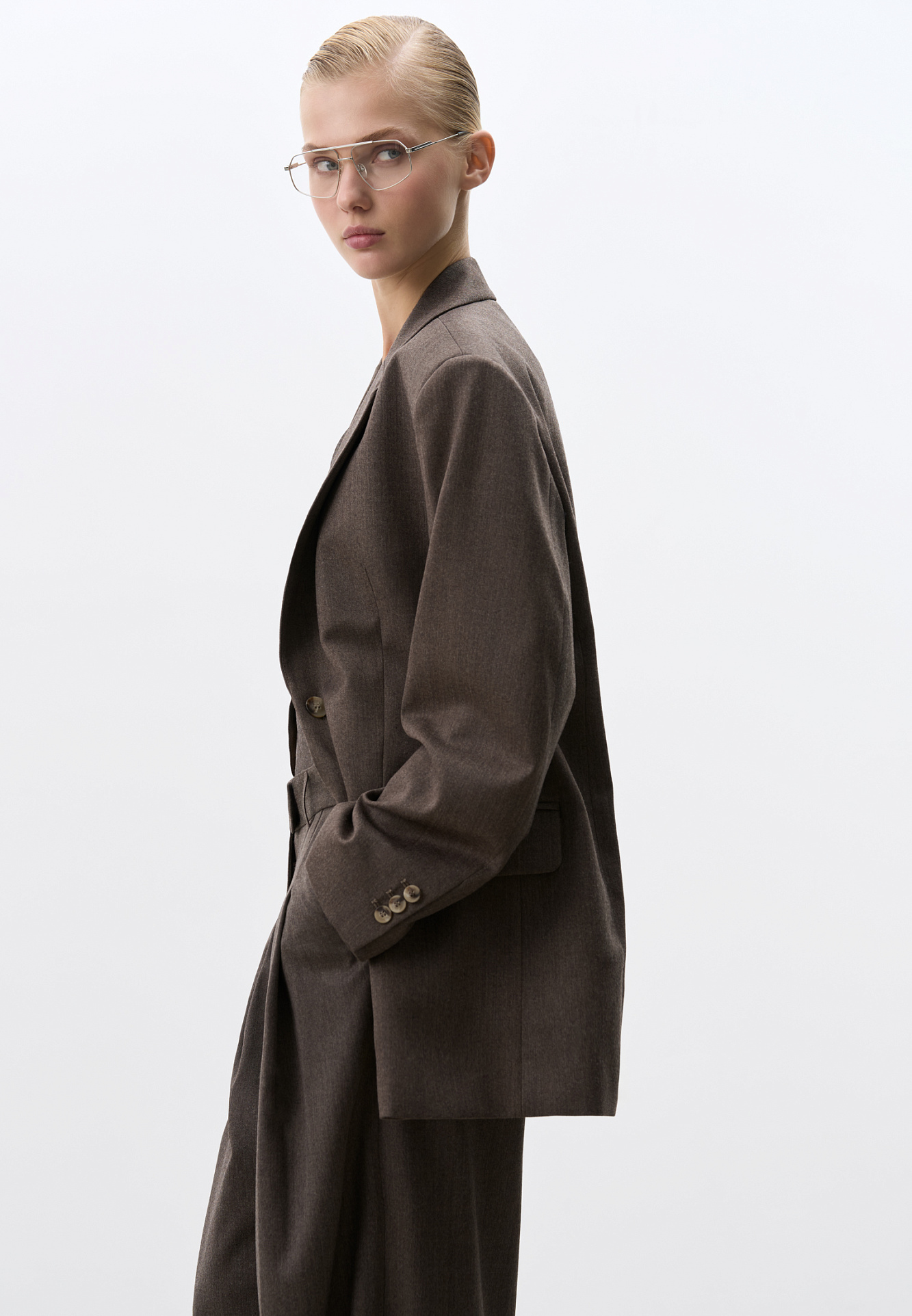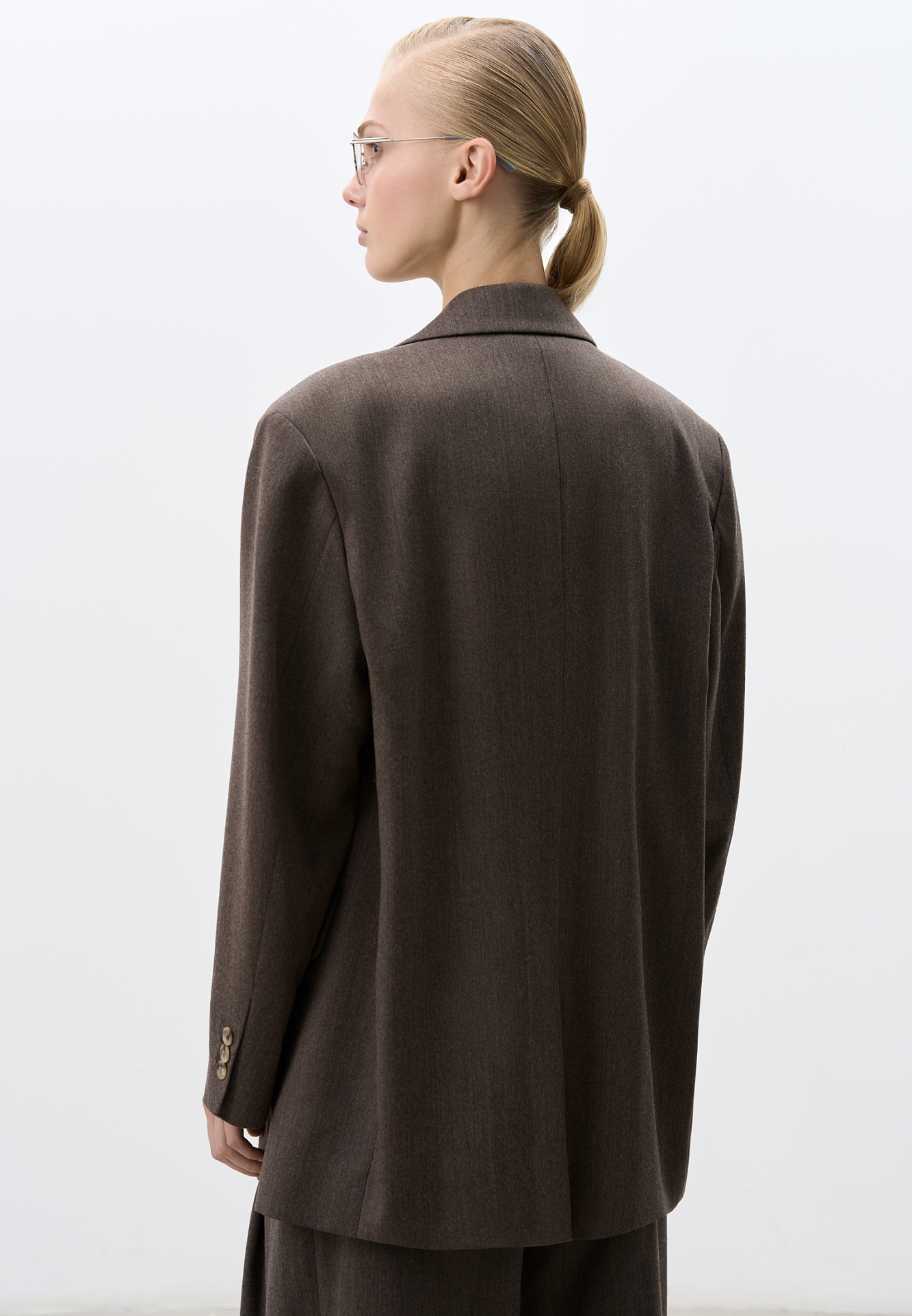 Классический жакет из фланели. Модель прямого кроя с лацканами и прорезными карманами с клапанами. Застежка на две пуговицы. Изделие на подкладке.