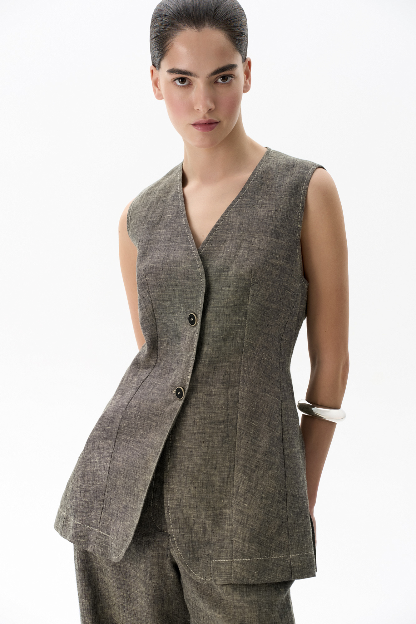 Удлиненный жилет из 100% льна