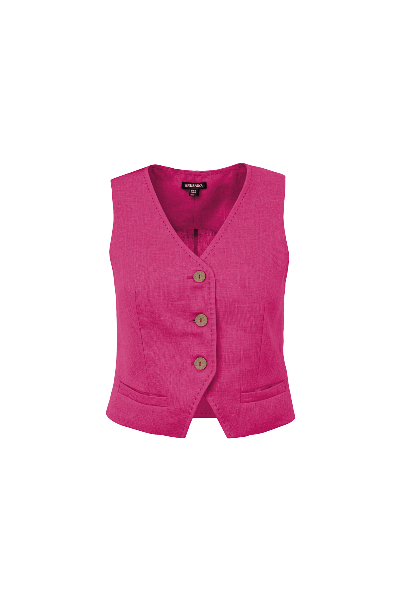 Жилет из 100% льна с карманами. Застежка на пуговицах.