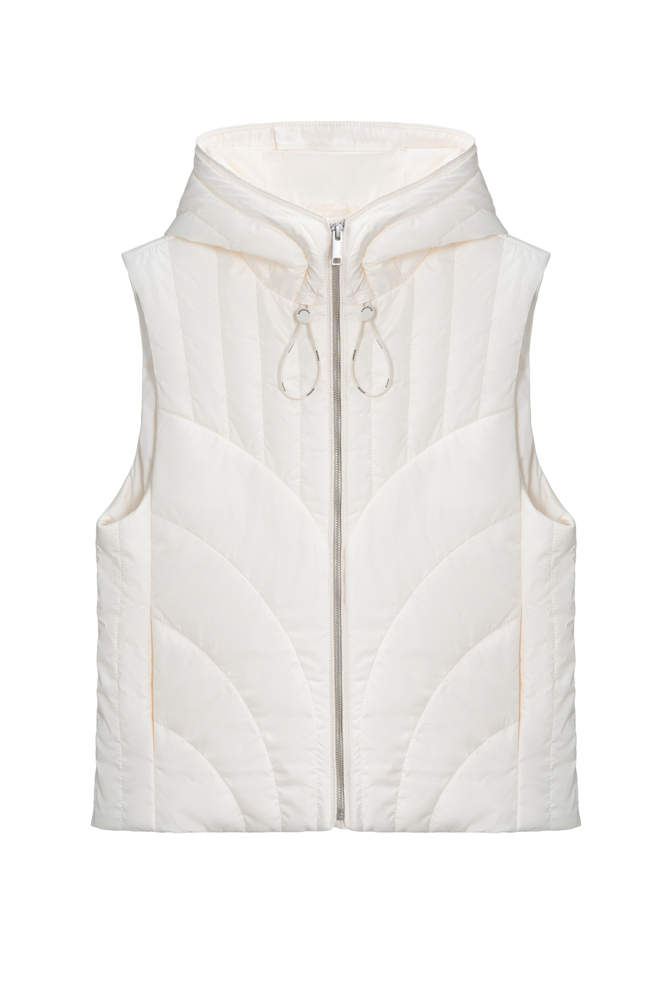 Жилет на синтепоне с капюшоном. Модель свободного силуэта с боковыми карманами. Капюшон регулируется кулиской. Застежка на молнию. На подкладке.