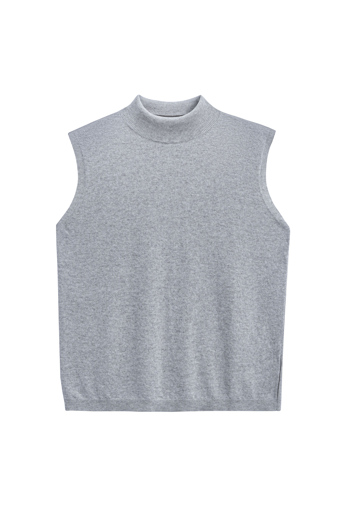Трикотажный жилет из кашемира и шерсти. Модель без рукавов с воротником-стойкой, выполненным в тонкий рубчик.