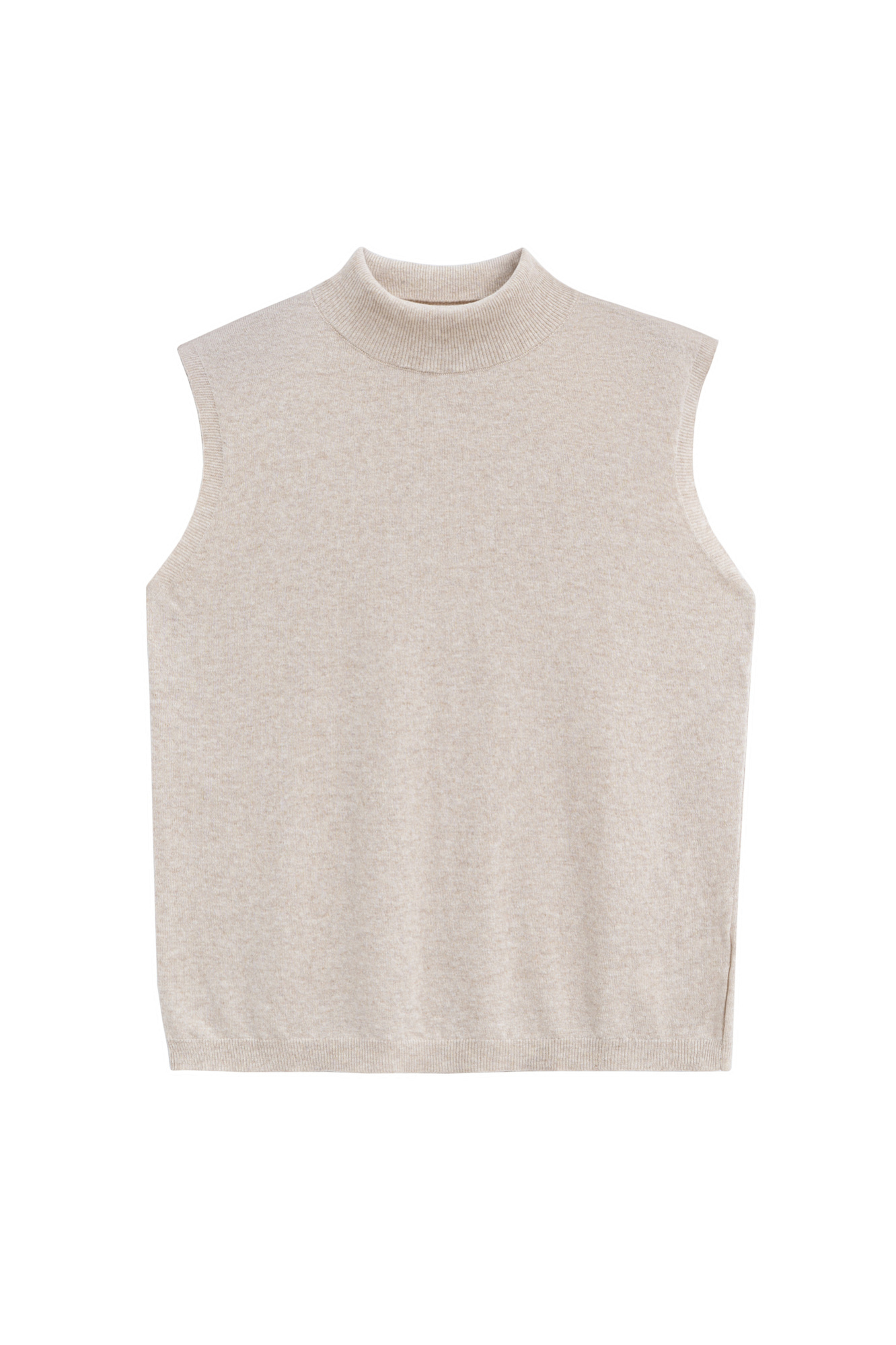 Трикотажный жилет из кашемира и шерсти. Модель без рукавов с воротником-стойкой, выполненным в тонкий рубчик.