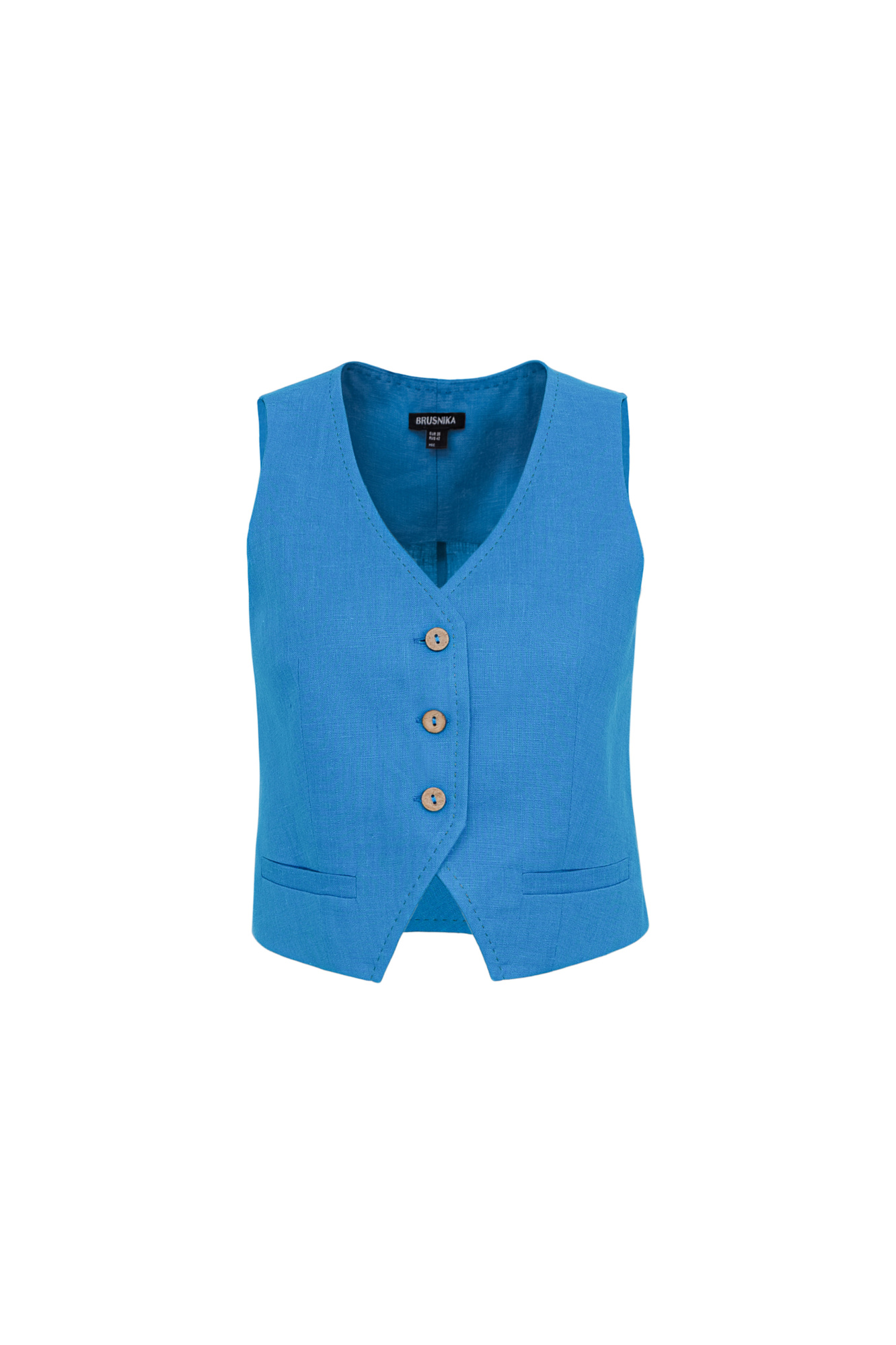 Жилет из 100% льна с карманами. Застежка на пуговицах.