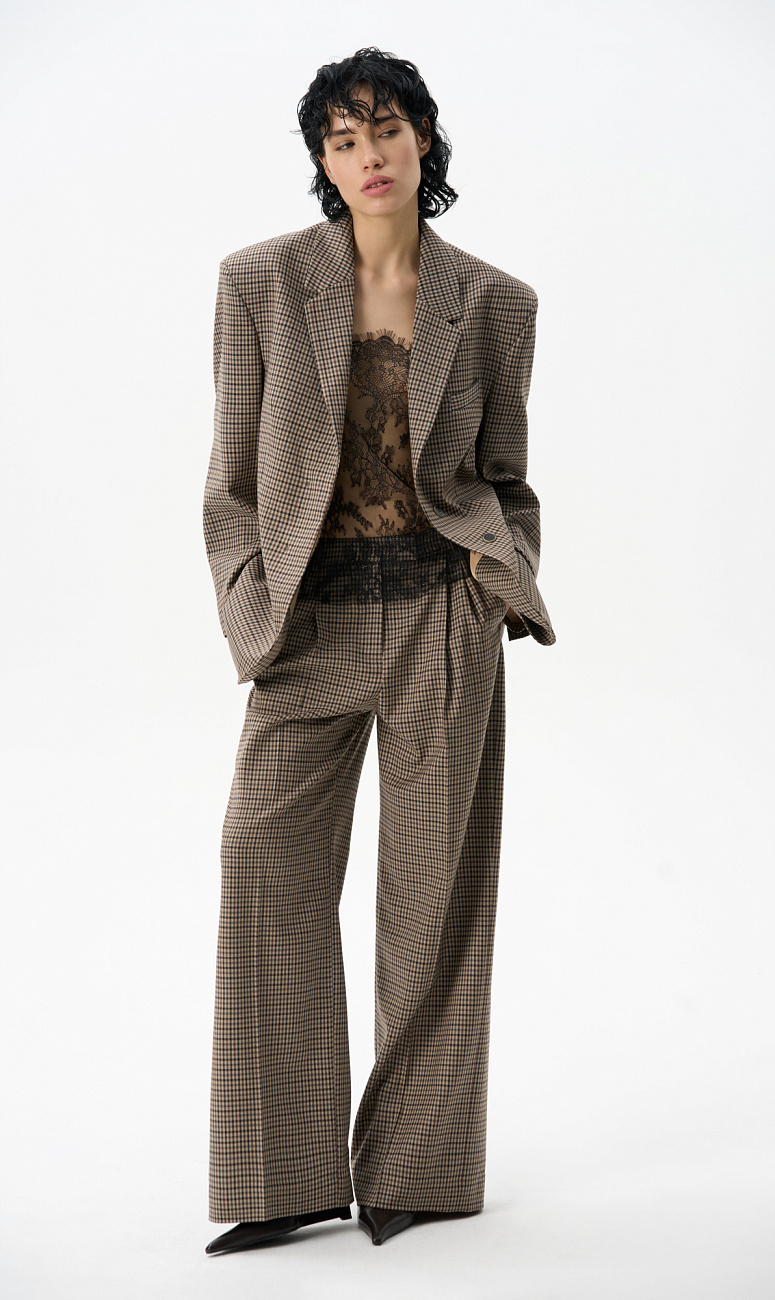 Товары в образе: Жакет 27 900 ₽, Топ 3 500 ₽, Брюки 18 400 ₽,